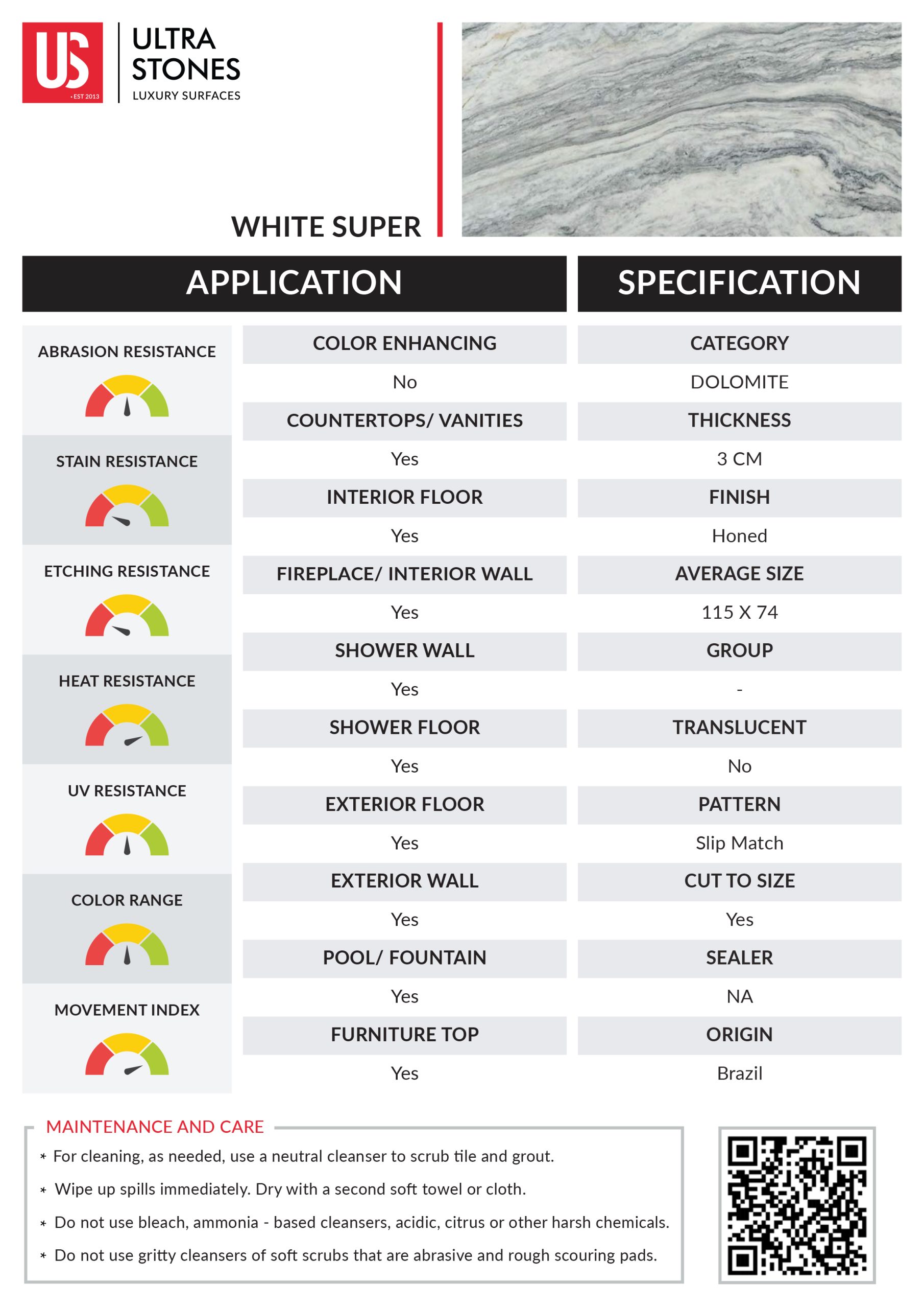 White Super 3cm Honed