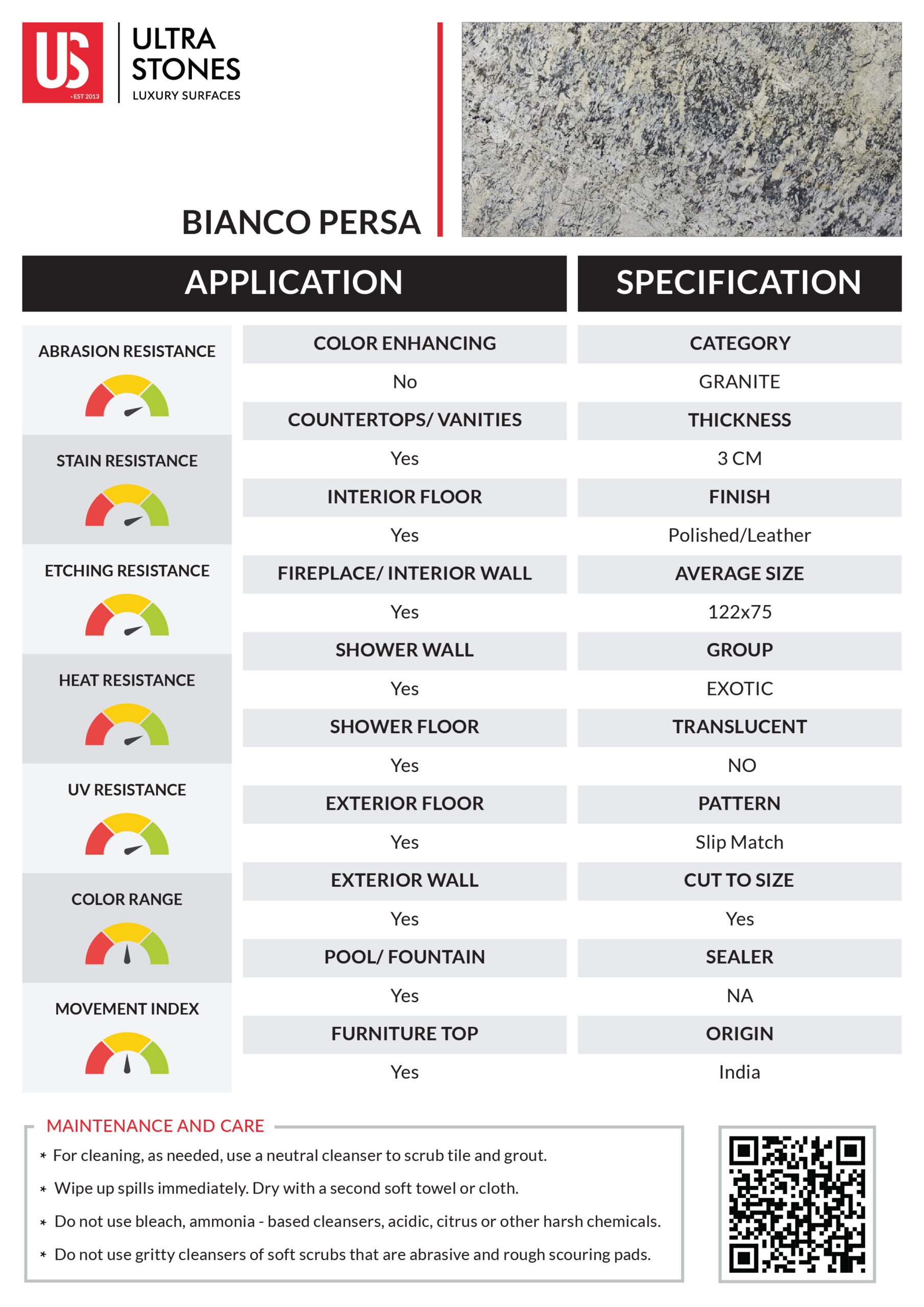 Bianco Persa granite is sourced from Brazil and is commonly used in luxurious residential and commercial spaces. It features a captivating blend of beige and gray speckles, offering a balanced contrast of warm and cool tones. Whether used in traditional or contemporary designs, this natural granite adds depth and character to any setting.