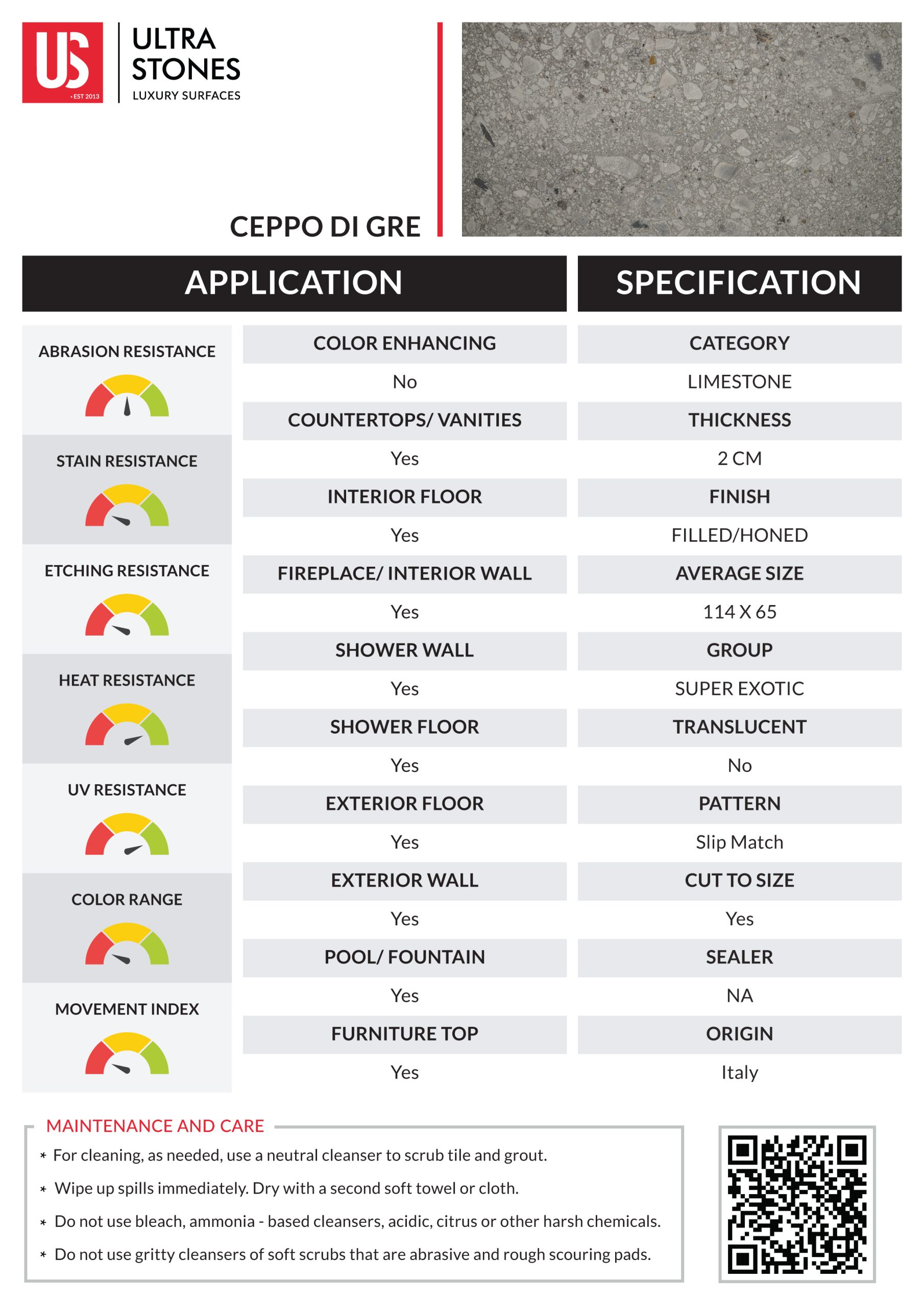| 114 X 65 | 2 CM | Honed/Filled | Slip Match |