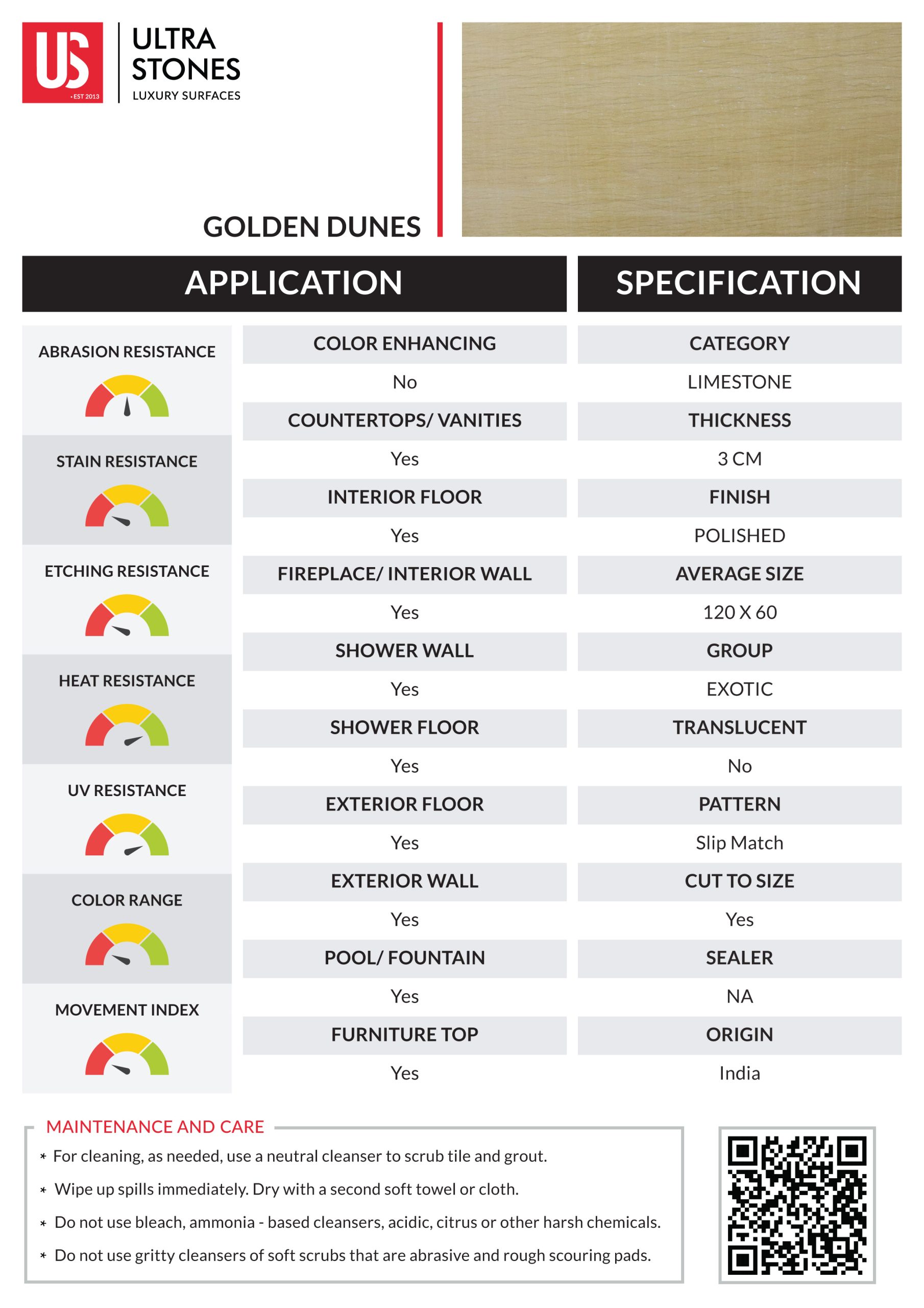 Golden Dunes limestone is an ideal choice for designing warm and inviting spaces. It features a rich golden palette enhanced with thin monochromatic striations, resembling beautiful desert dunes. Its unique color and uniform appearance make Golden Dunes a sought-after choice for luxurious and elegant interiors. Elevate your residential and commercial spaces with this stunning limestone, perfect for flooring, vanities, and countertops.