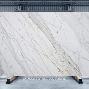 Calacatta Bettogli is a premium marble from the Carrara region of Italy. It boasts a stunning canvas of a warm white background adorned with grey and taupe veins. Occasional golden hints further elevate the stone’s appearance, making it a coveted choice for luxury interiors. Its classic beauty and superior durability add value to both residential and commercial spaces.