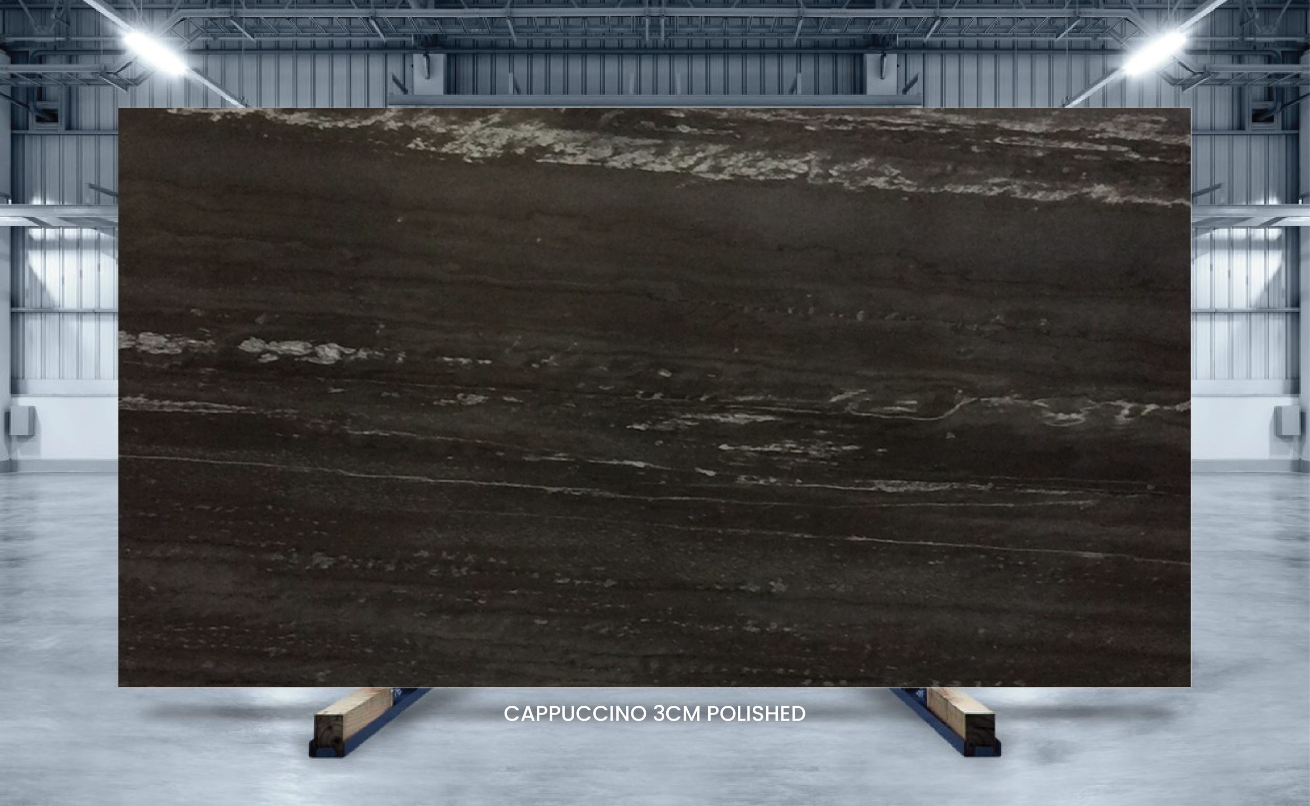 Cappuccino marble is distinguished by a captivating blend of dark coffee brown, taupe, and grey striations. The veining flows horizontally, suggesting movement and harmony in any space. Its earthy tones bring a rich, luxurious appeal, making Cappuccino a perfect choice for designing vanity tops, shower walls, accent walls, and kitchen islands.
