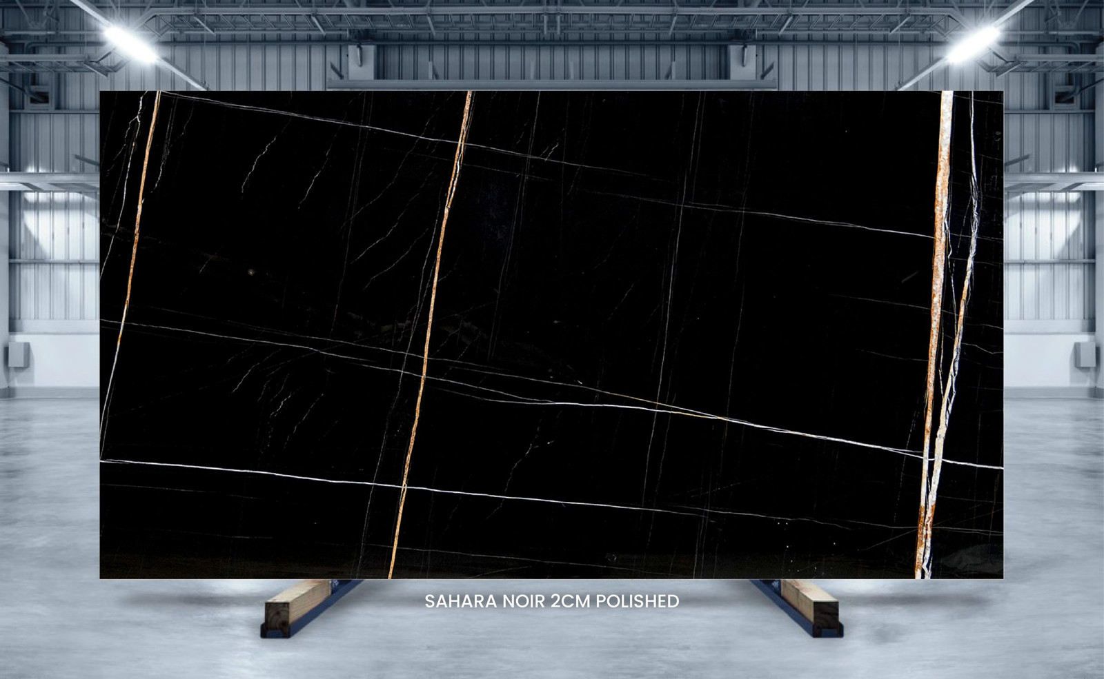 Sahara Noir is a premium grade marble quarried in Italy. The clean black backdrop of its surface is accentuated by straight and thin orange and white streaks. The extraordinary appearance of this marble makes it popular amongst designers and architects for commercial and residential projects. It can be used for designing exquisite walls, countertops, backsplash, floors, wall cladding, fireplace surrounds, and more.