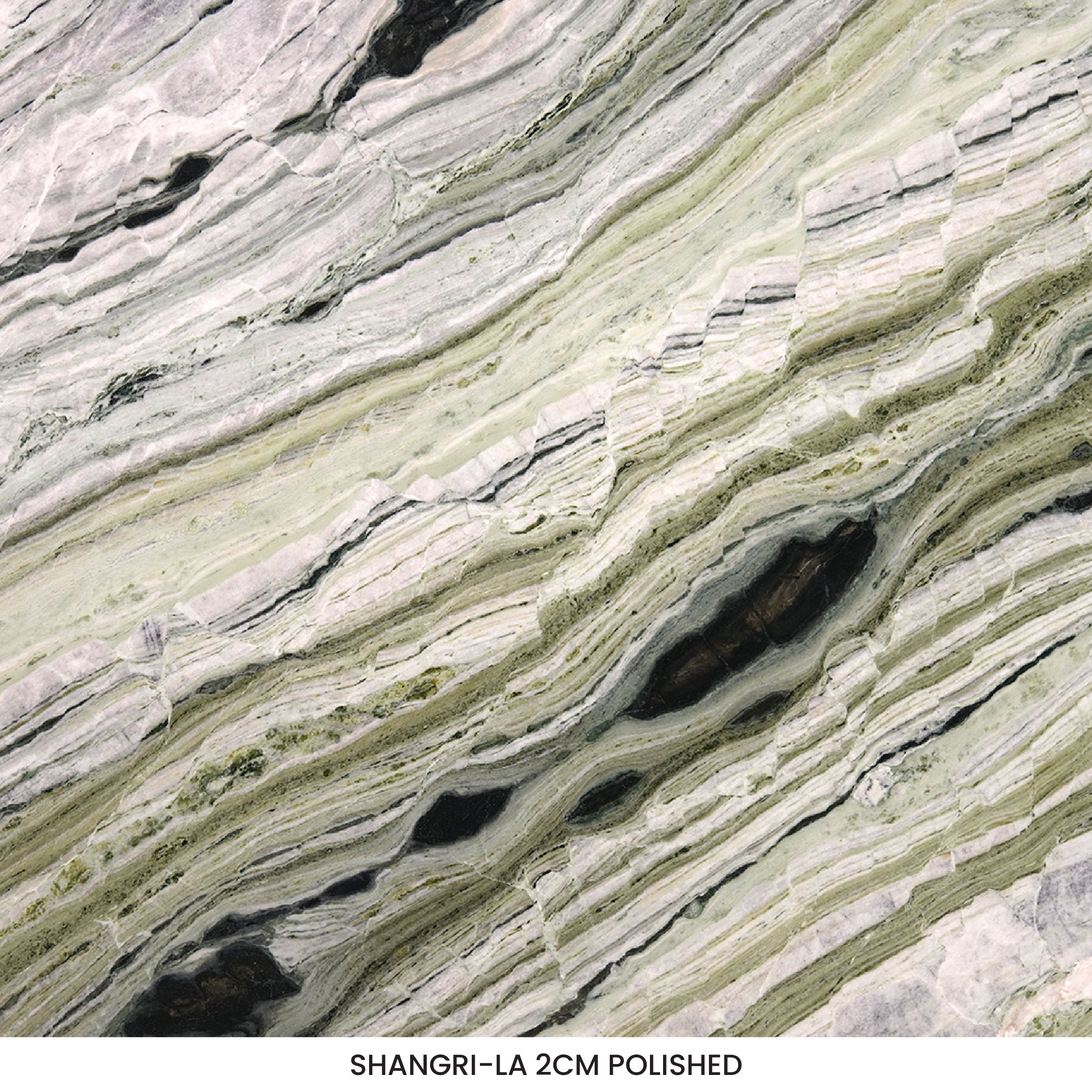 Shangri-La is a premium green marble, quarried in China. It is coveted for captivating veining patterns in shades ranging from mint green to dark green. Furthermore, white, grey, and black angular veins across the slab create a homogeneous yet versatile appearance. Whether you want to create a visually arresting bookmatched accent wall or countertop, this high-end marble can transform any residential and commercial space into a luxurious statement.