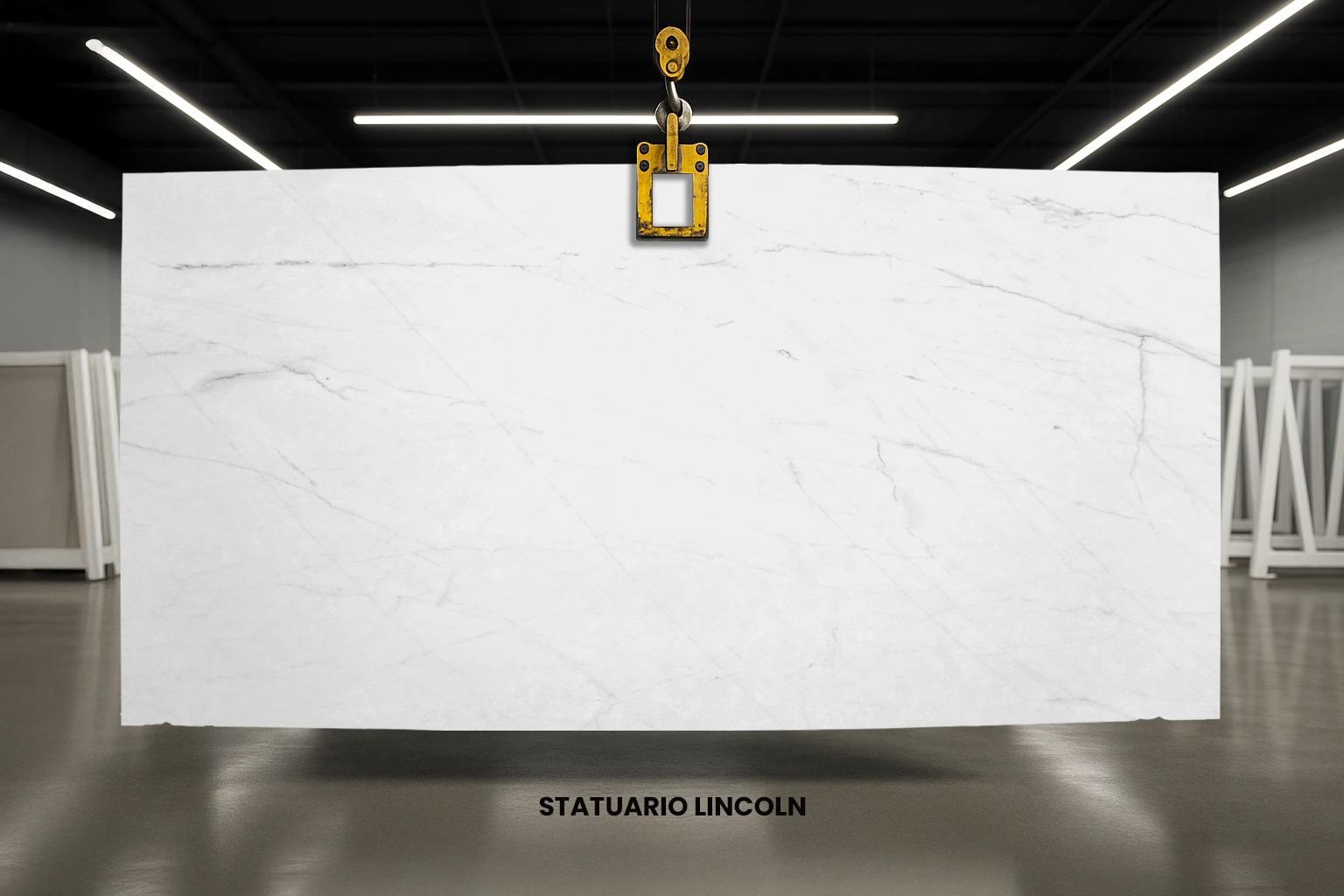 Statuario Lincoln is a premium marble from Italy. It is prized for a minimal look and exceptional durability. It features a pristine white surface adorned with subtle white streaks, making Statuario Lincoln marble a perfect choice for designing luxurious countertops, islands, floors, backsplashes, and other interior features.