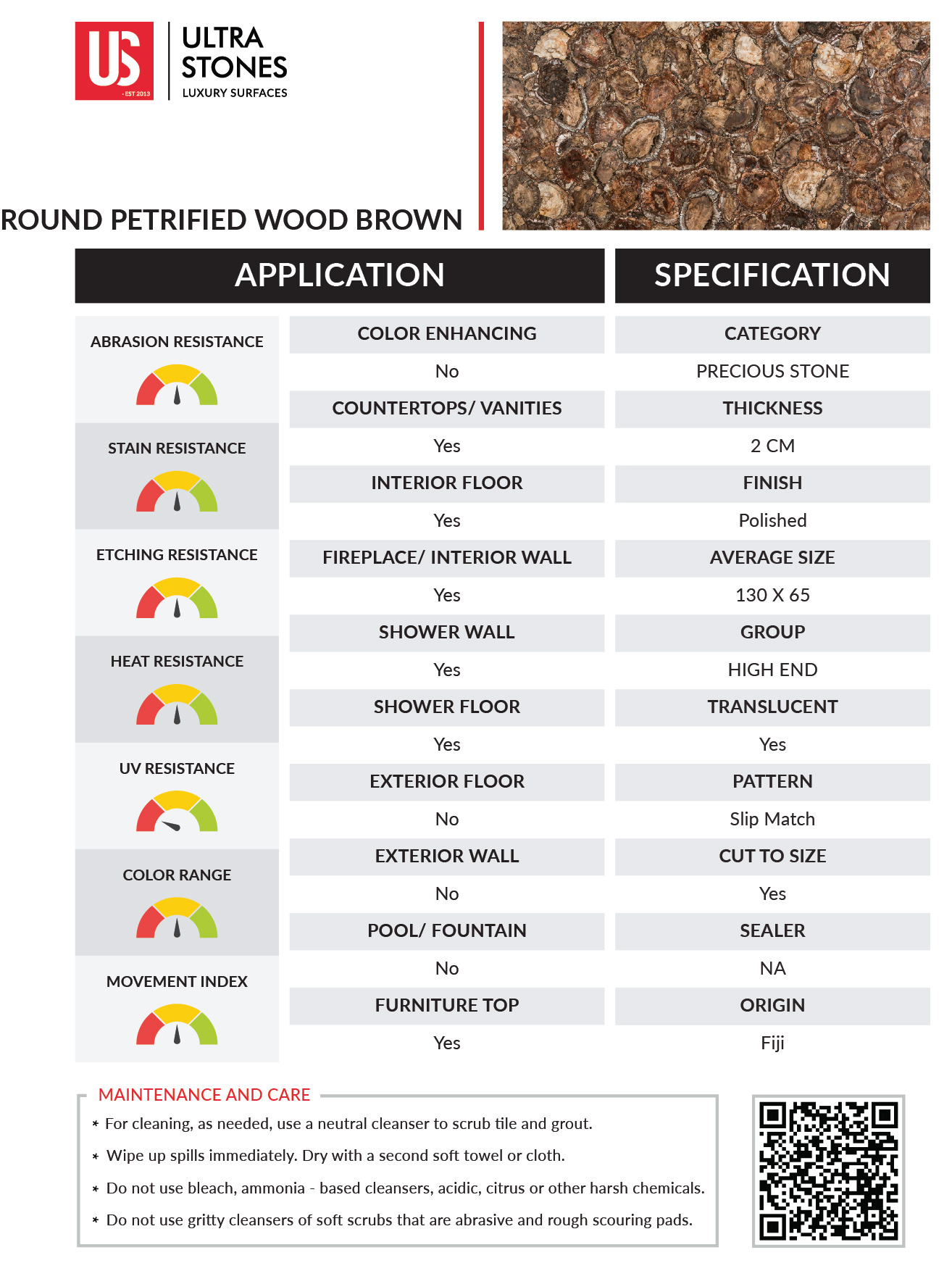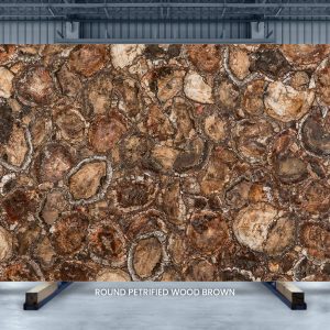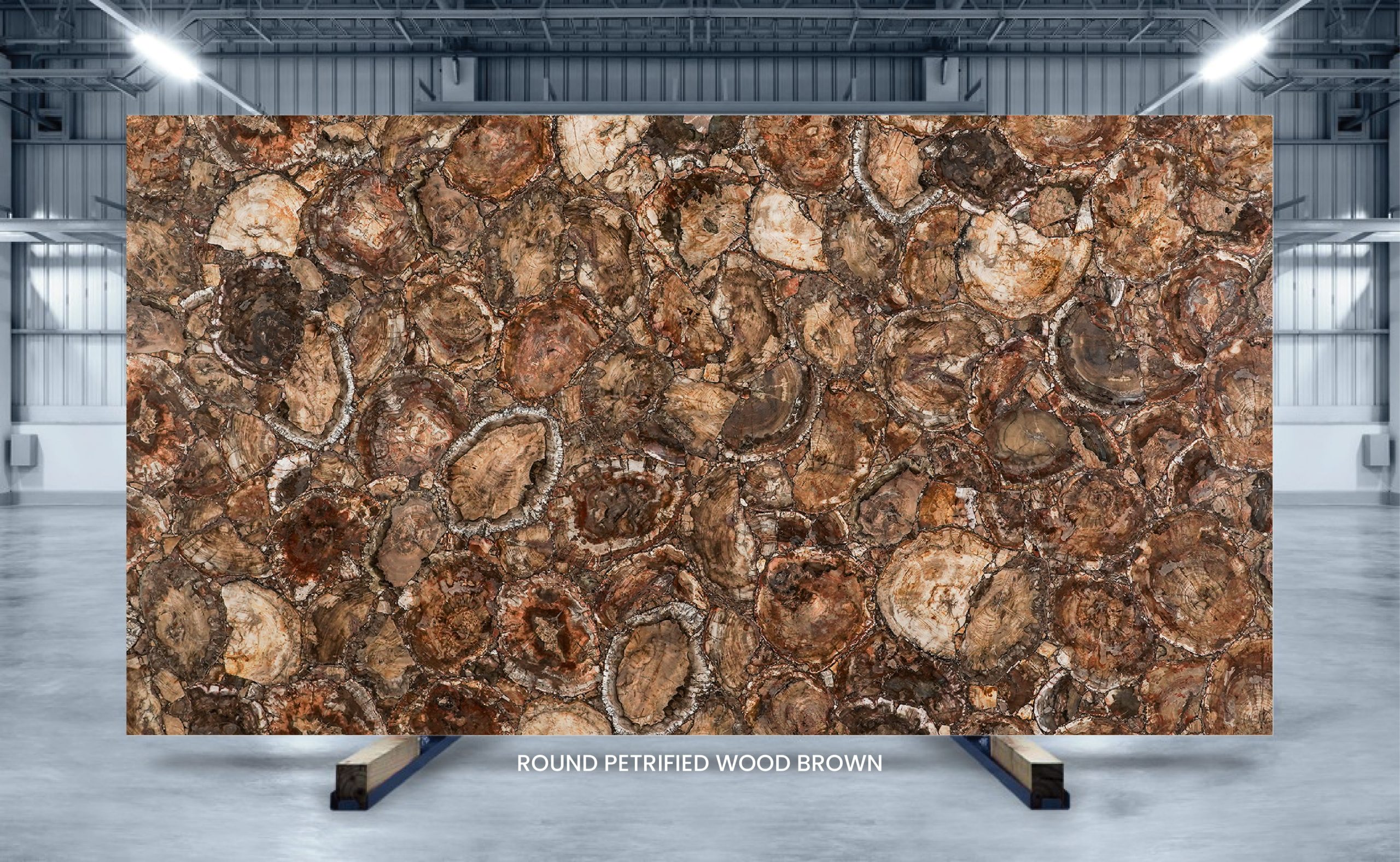 Brown Petrified wood literally is wood turned into stone. Petrifaction is the result of a tree replaced by stone over years of fossilization , some dates back up to 240 million years. these surfaces add a definite class and luxurious look to the room décor.