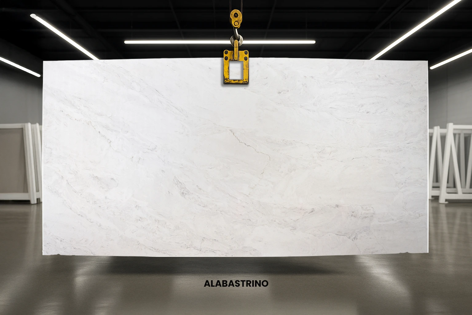 Alabastrino quartz epitomizes sophisticated charm, characterized by a subtle interplay of white and grey hues. Its pristine white background gives way to the gentle flow of soft grey veins with occasional golden tints, adding a visual depth to the appearance of the stone. Its balanced aesthetic and bright, reflective surface makes Alabastrino an ideal choice for creating beautiful countertops, islands, and table tops, inviting positive vibes in a place.