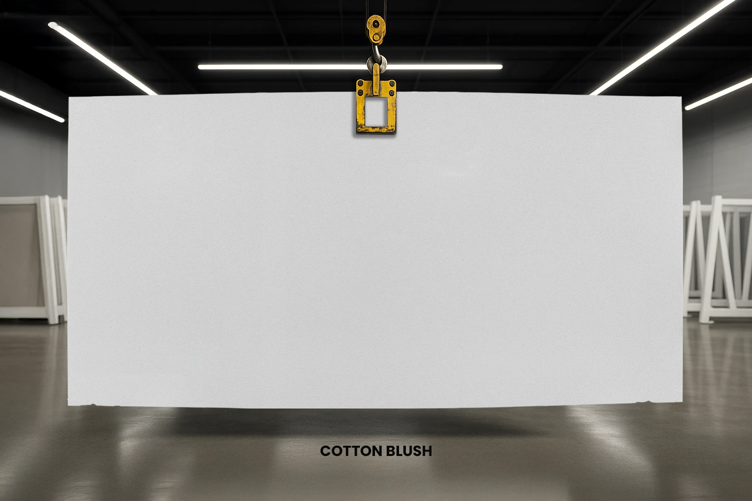 Cotton Blush quartz is a refined option for designing cohesive spaces. Its white surface is gently dusted with grey specks, echoing the minimalist beauty of natural granite. Whether in residential or commercial settings, its uniform appearance enhances visual harmony, creating a clean and balanced aesthetic.