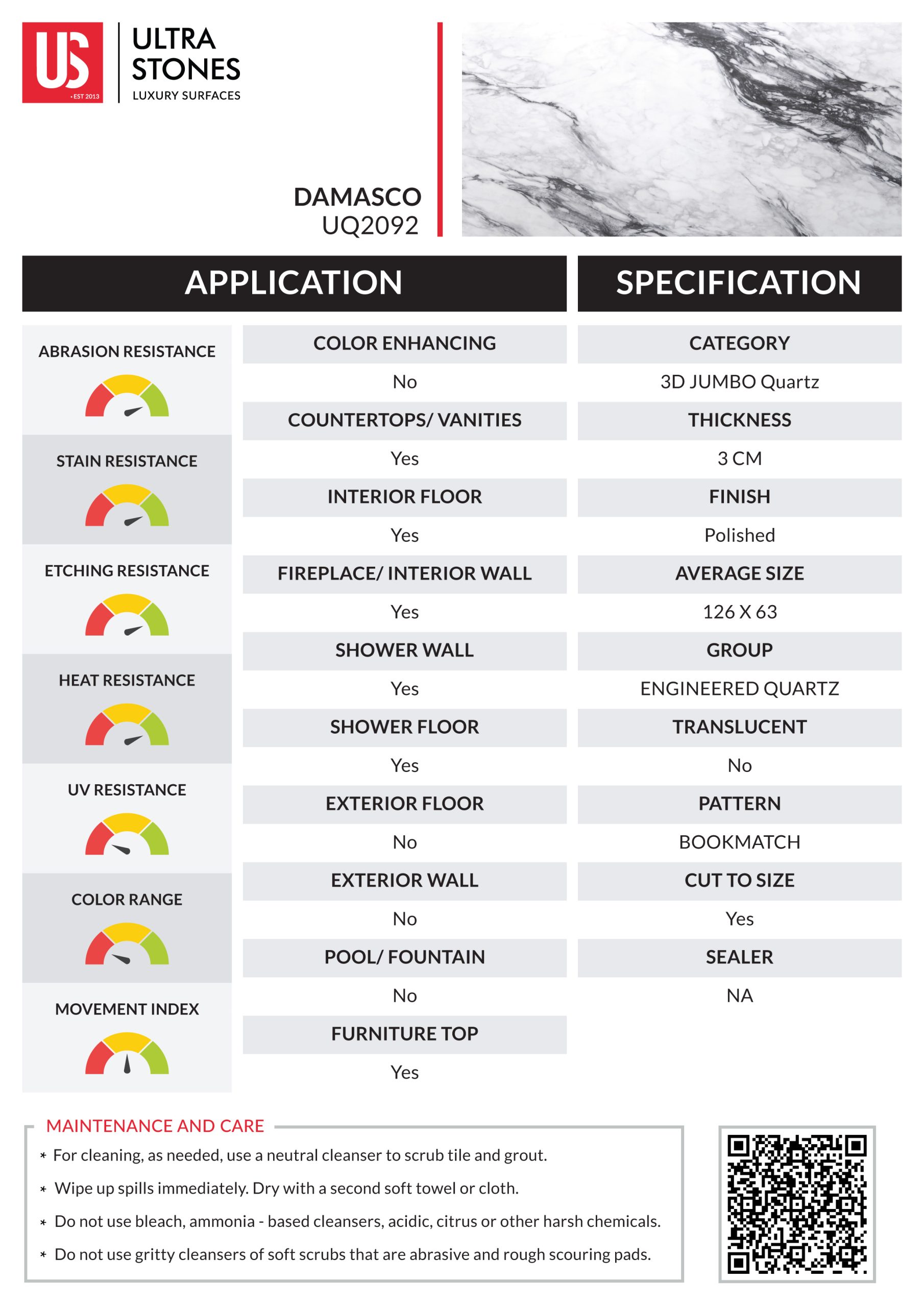 Damasco 3D is a bold and beautiful quartz valued for its seamless aesthetic and incredible strength. Its brilliant white background is highlighted by light and dark grey veins, adding a dramatic touch to the stone’s appearance. Design luxurious accent features with the gorgeous Damasco 3D quartz. Moreover, its superior resilience makes it a suitable choice for lavish residential and commercial spaces.