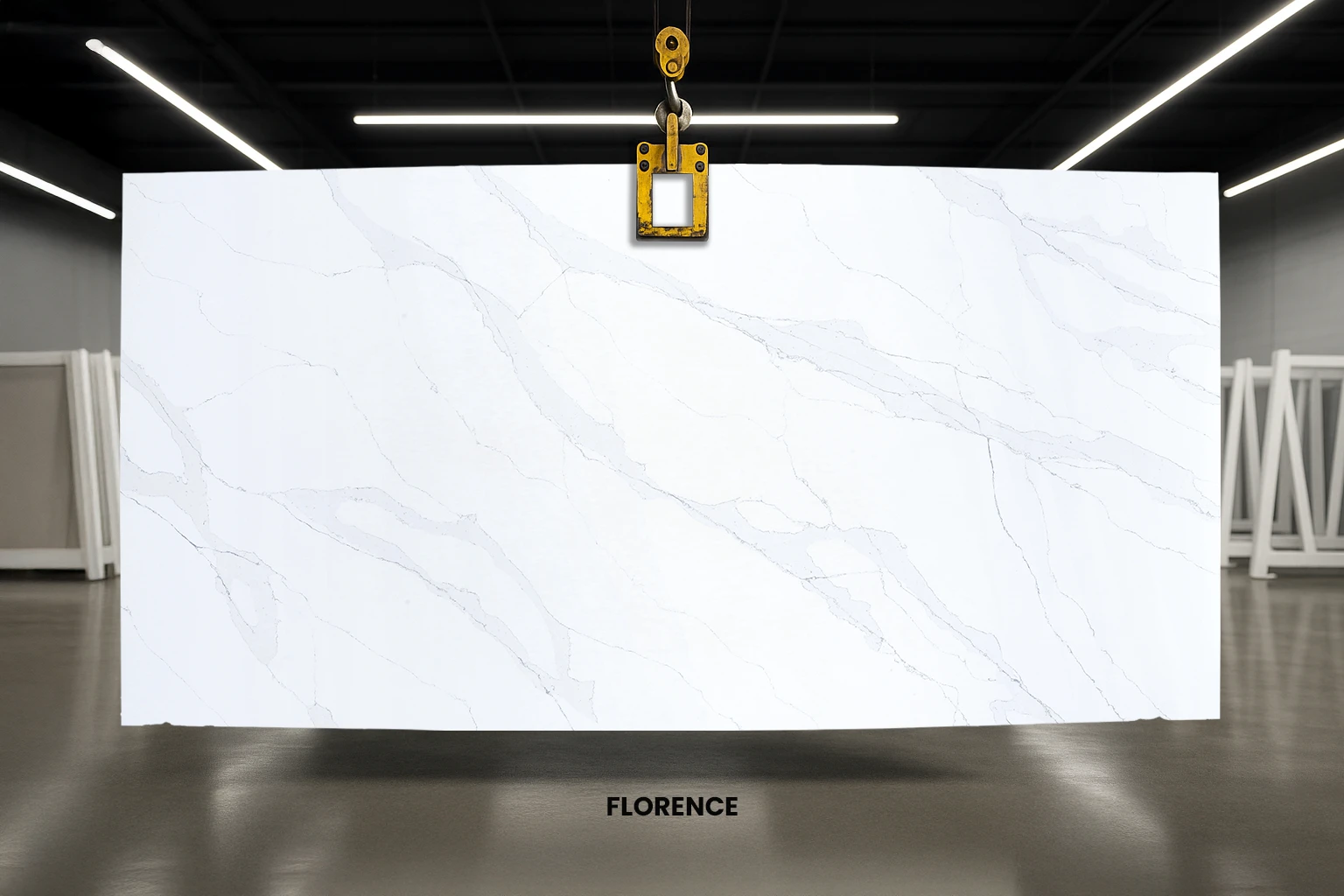 Florence is a bright and durable quartz. It has a bright white background adorned with light grey veins evoking a sense of gentle charm and allure. In addition to its soft aesthetic, Florence quartz exhibits superior resilience against scratching, etching, and staining, making it a suitable choice for surfacing residential and commercial spaces.