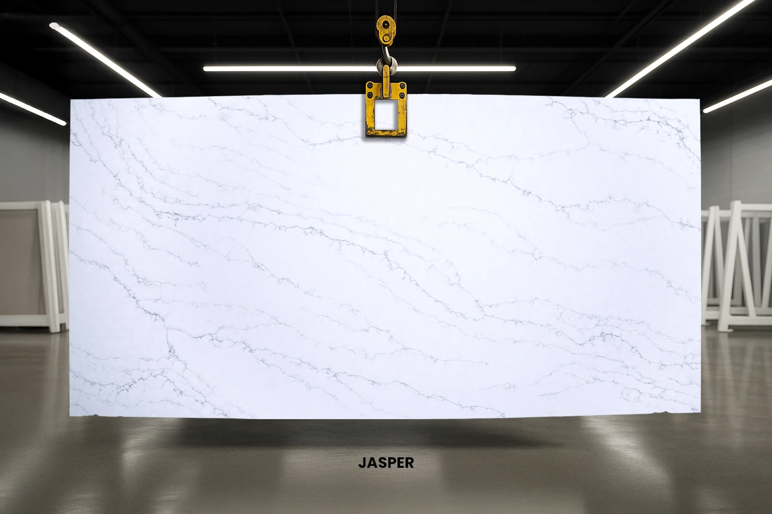 Jasper is a classic white and grey quartz known for its sleek appearance. Boasting a white background elevated by robotic blue-grey veins, this quartz exudes a sense of gentleness. Suitable for both small and large spaces, Jasper can be used to design luxurious countertops, islands, vanities, flooring, and wall cladding.