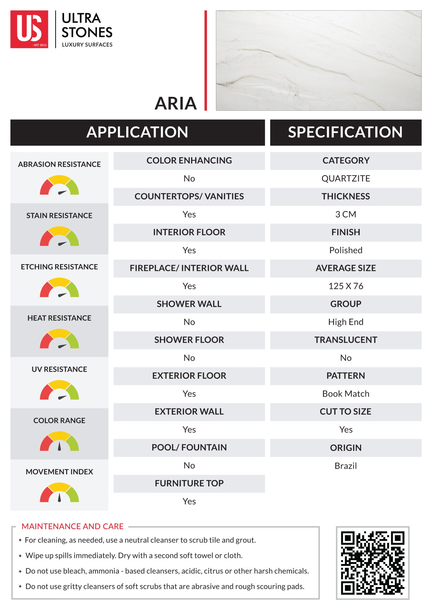 Aria quartzite is a pristine white quartzite, exuding timeless elegance. The stone is known for its undisputed beauty and enduring resilience. Its subtle grey veins on a white background add a minimalistic touch to the stone’s appearance. Its neutral palette can complement various design styles, from traditional to transitional, elevating the aesthetic and functional value of any space. Brighten up your spaces with Aria quartzite countertops, islands, flooring, and wall cladding.