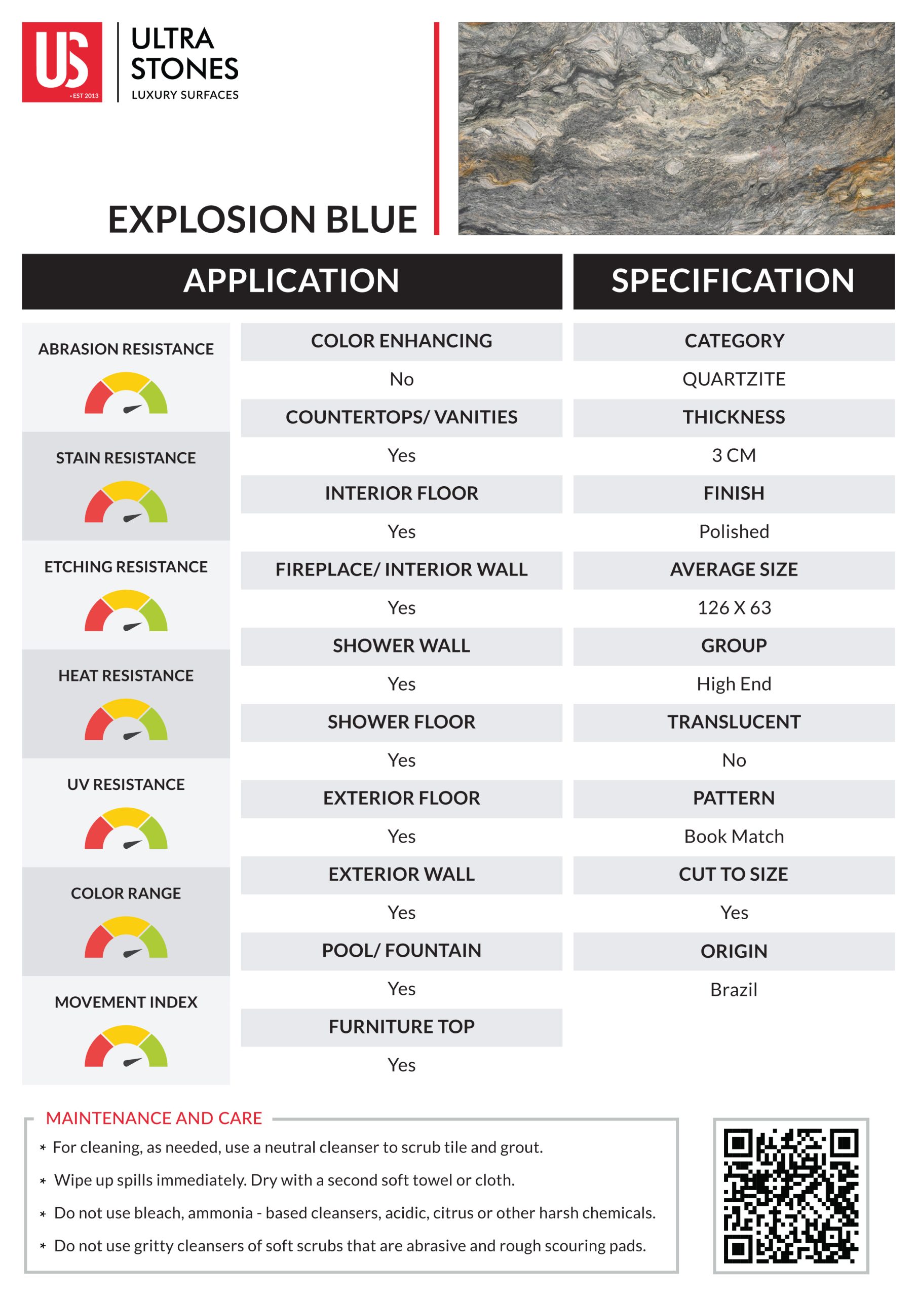 Add a dramatic twist to your interiors with Explosion Blue quartzite. Characterized by a striking fusion of deep greyish blue, beige, silver, and golden hues, this stone gives a bold and artistic vibe. Its wave-like veins create striking gorgeous patterns that can serve as an art piece in your interior design. Use this stone in your residential and commercial spaces to elevate the overall aesthetic of the spaces.