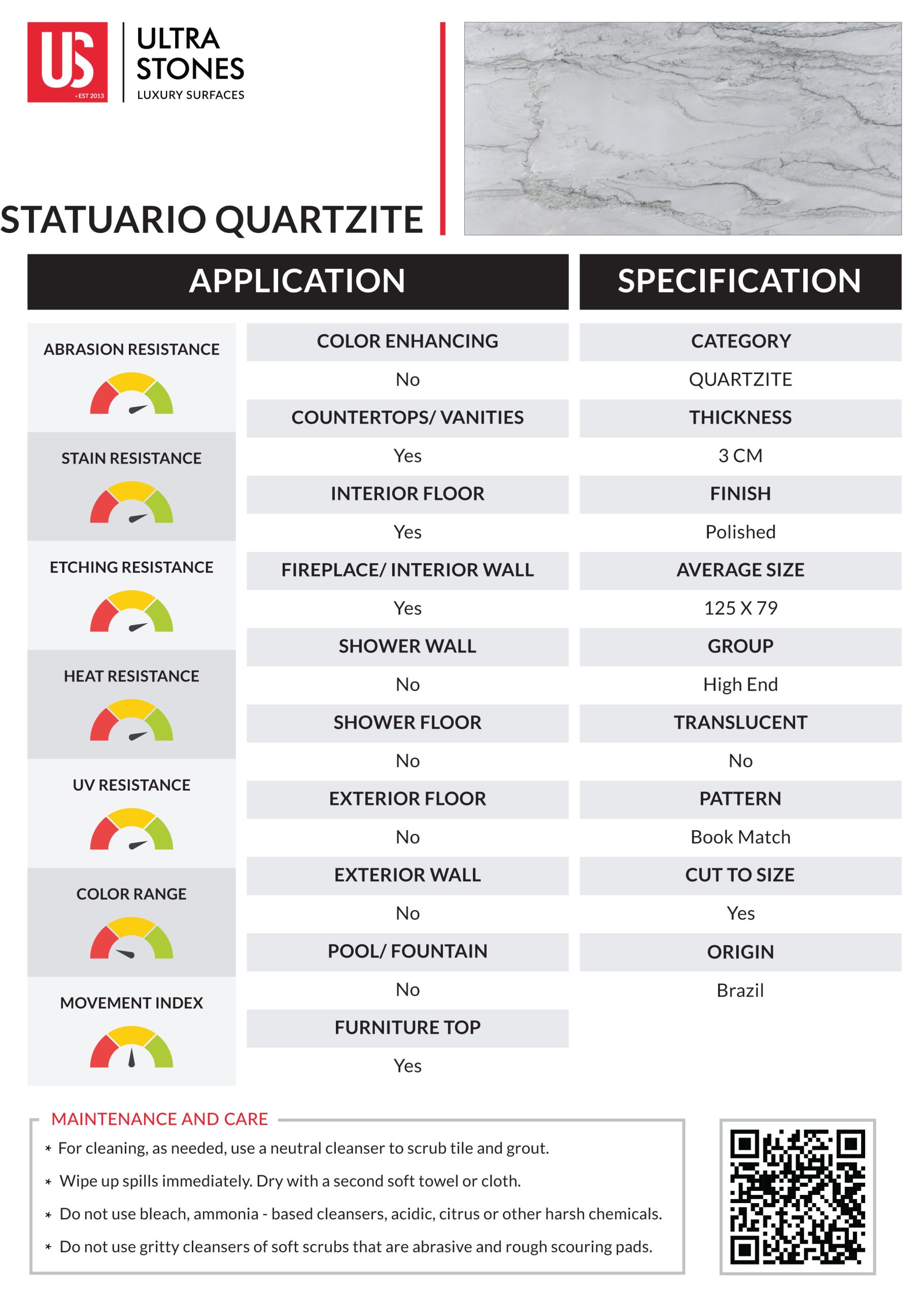 Statuario quartzite is prized for its beautiful marble-like appearance. With a pristine white background accentuated by subtle grey undertones and thick veins, the stone embodies the timeless elegance of marble with the added benefit of extraordinary strength. Create elegant and durable countertops, flooring, fireplaces, wall cladding and more with top-rated Statuario Brushed quartzite.