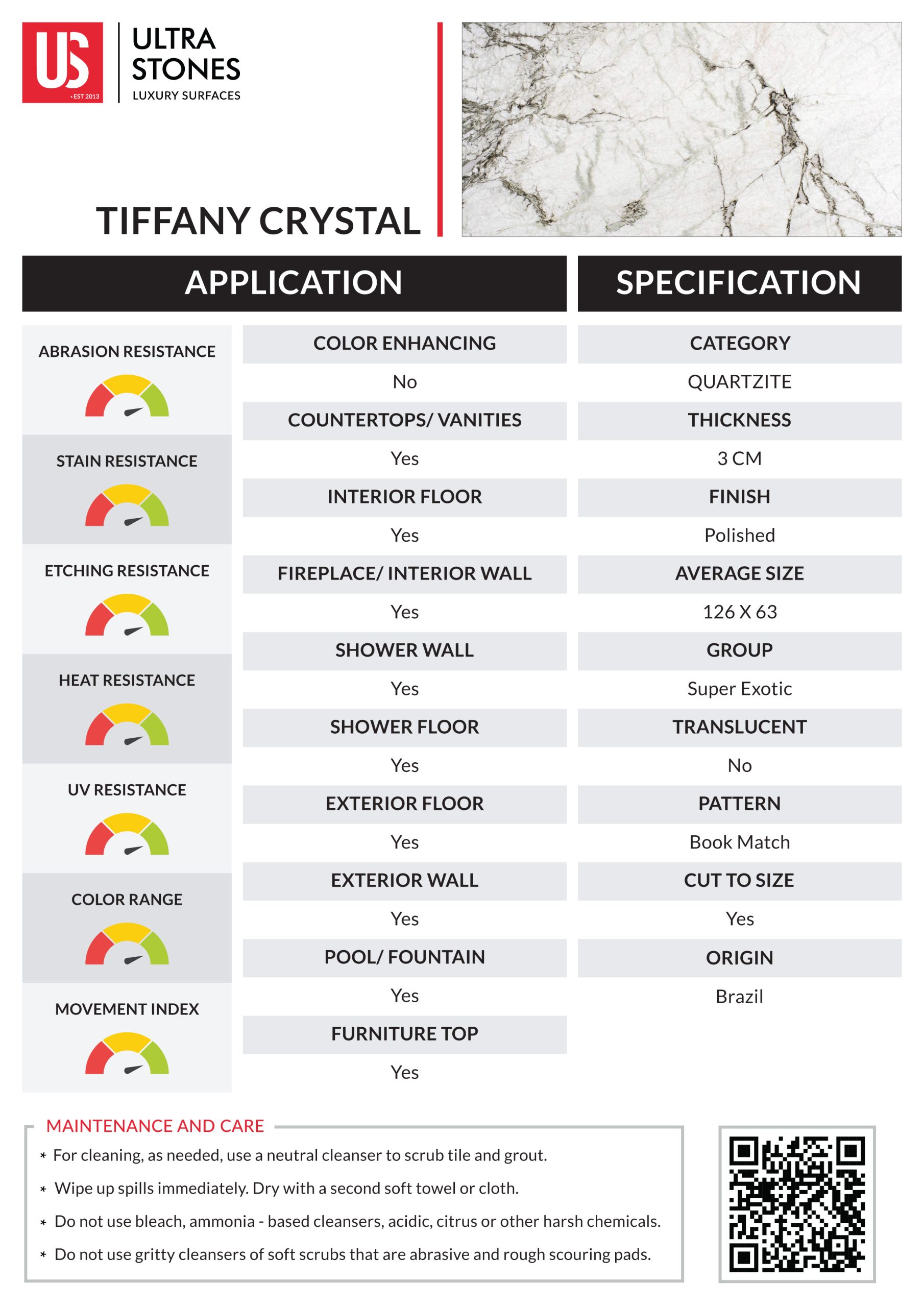 Tiffany Crystal is a stunning quartzite with a snow-white background highlighted by subtle taupe and prominent grey veins. The gorgeous interplay of light and dark hues gives this stone a characteristic depth. Its neutral palette blends seamlessly with traditional and modern design schemes. Create bright and airy spaces with our pristine Tiffany Crystal quartzite.