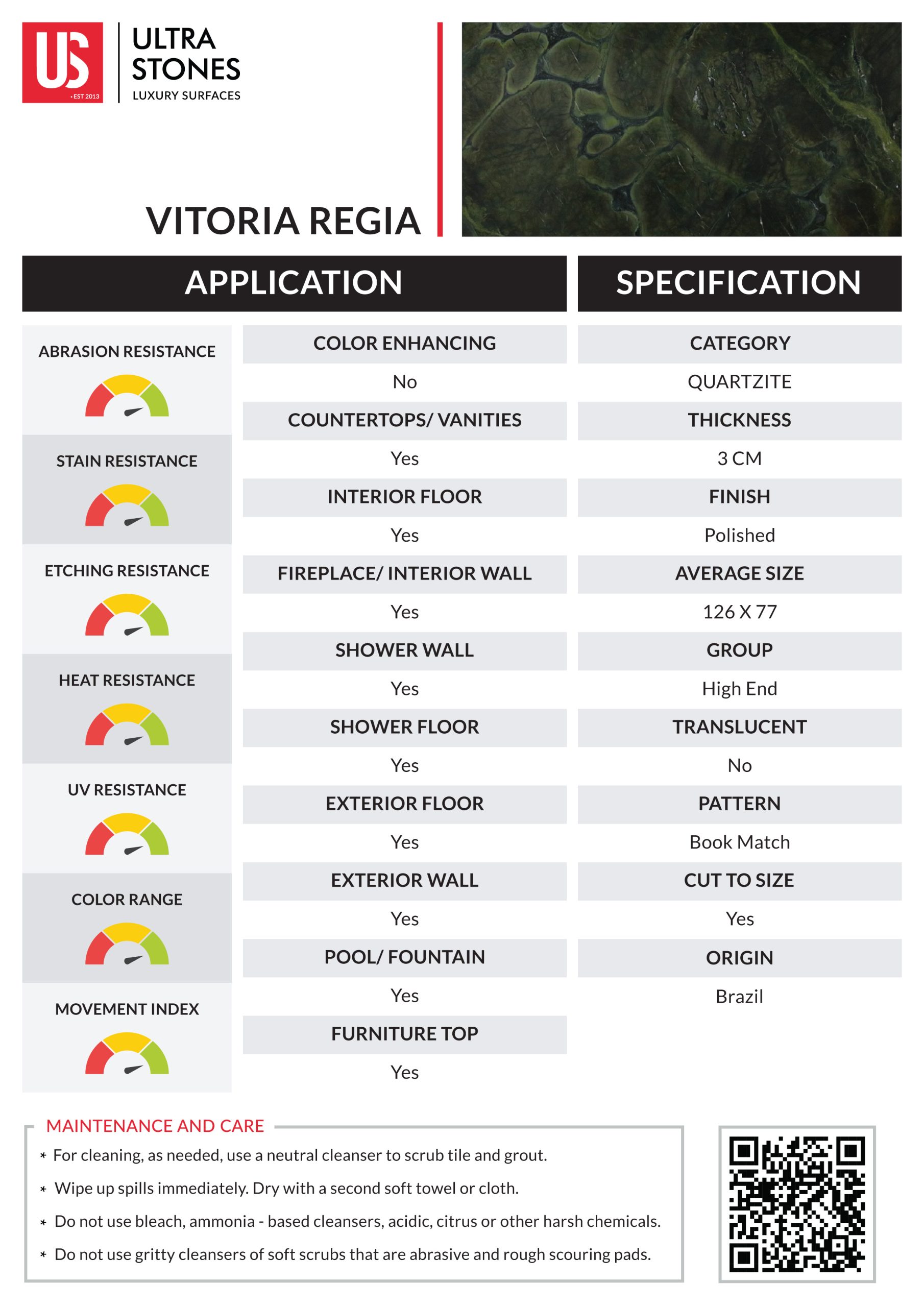Victoria Regia is a gorgeous and durable quartzite. Its background features deep green bubble shapes that give the stone a unique appearance. This quartzite is a perfect choice for creating statement features. Add a dramatic depth to your interiors with the best quality Victoria Regia quartzite.