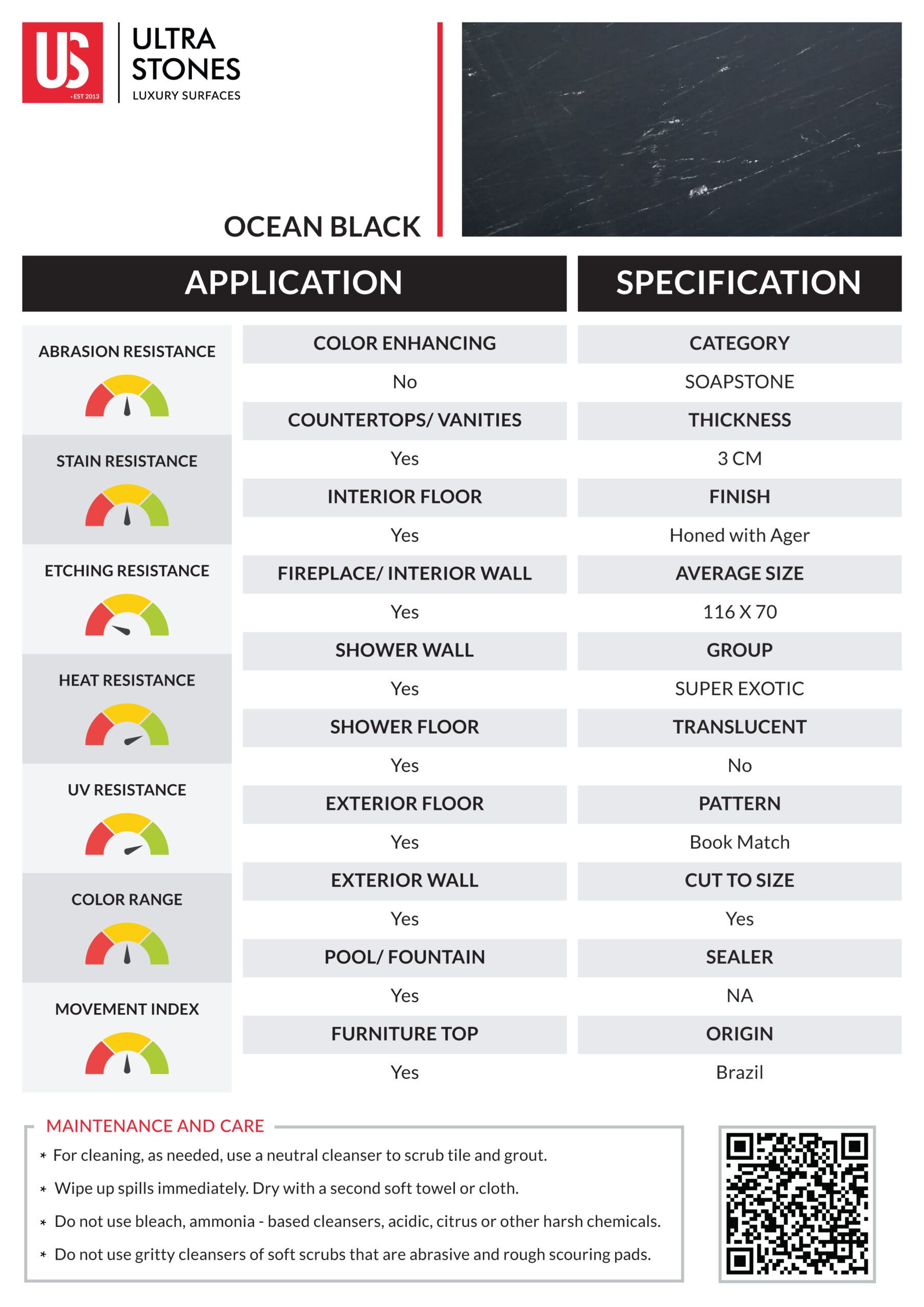 Delve into the natural magnificence of natural surfaces with Ocean Black soapstone. It features a charcoal black surface adorned with bright white veins, creating a visually interesting display of light and dark hues. Its brilliant aesthetic makes Ocean Black soapstone ideal for various design aesthetics, from traditional to modern. Create luxurious countertops, backsplashes, shower walls, and other decor applications with our premium Ocean Black soapstone.