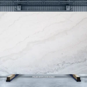 Polar White is a unique dolomite prized for its amazing looks and resilience. The stone boasts a delectable blend of white and grey hues. The subtle grey bands flow in waves across the surfaces, adding a sense of movement to the stone’s appearance. Bright and polished, Polar White dolomite makes spaces look vibrant and lively.