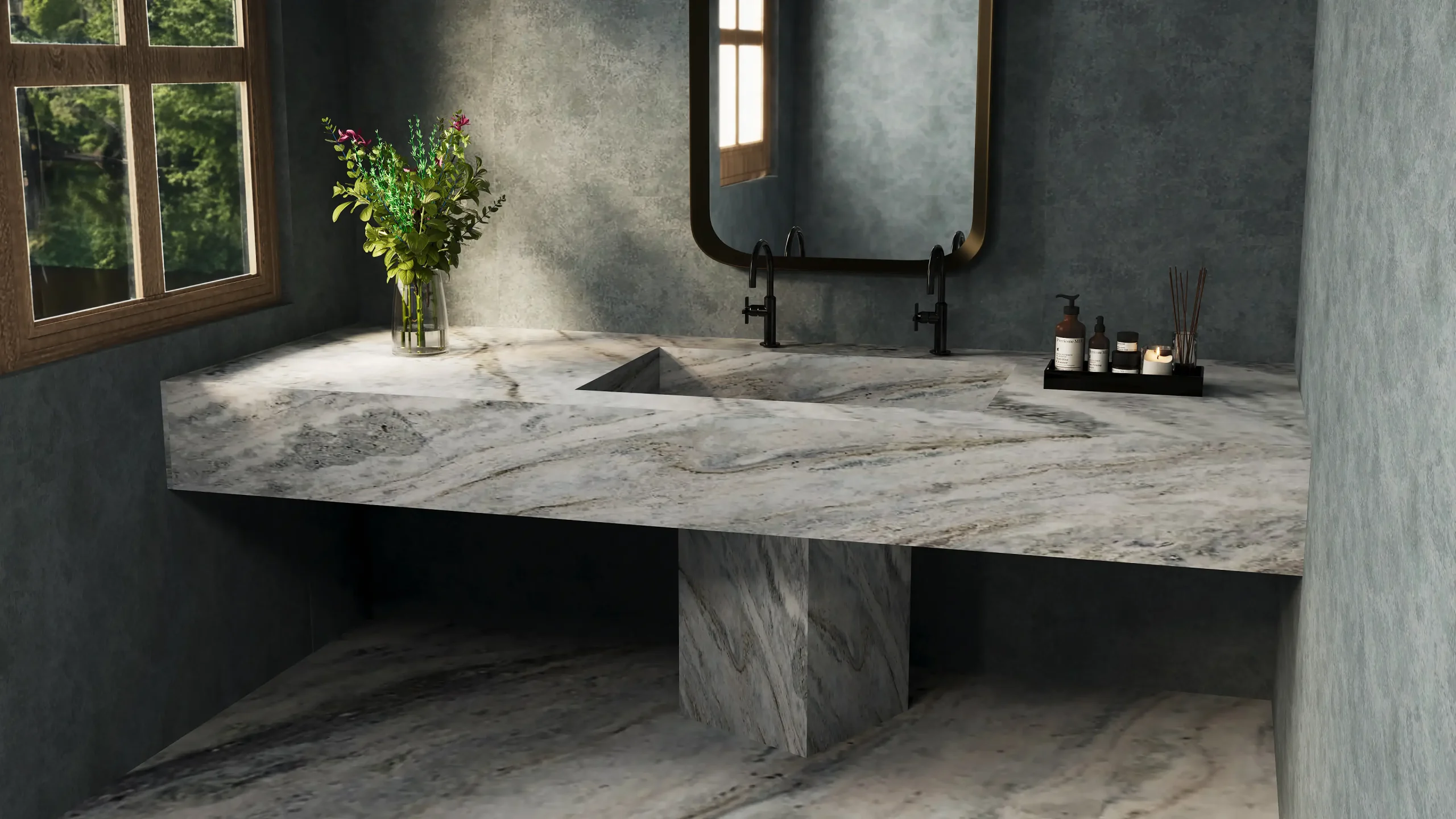 River Blue is one of the most desired dolomite surfaces prized for its unmatched beauty and strength. Characterized by a bluish-grey background, this stone is a popular choice for creating dynamic flooring, countertops, and bathroom surfaces. Subtle beige and white swirls give the stone a delightful contrast, making it suitable for a variety of design aesthetics.