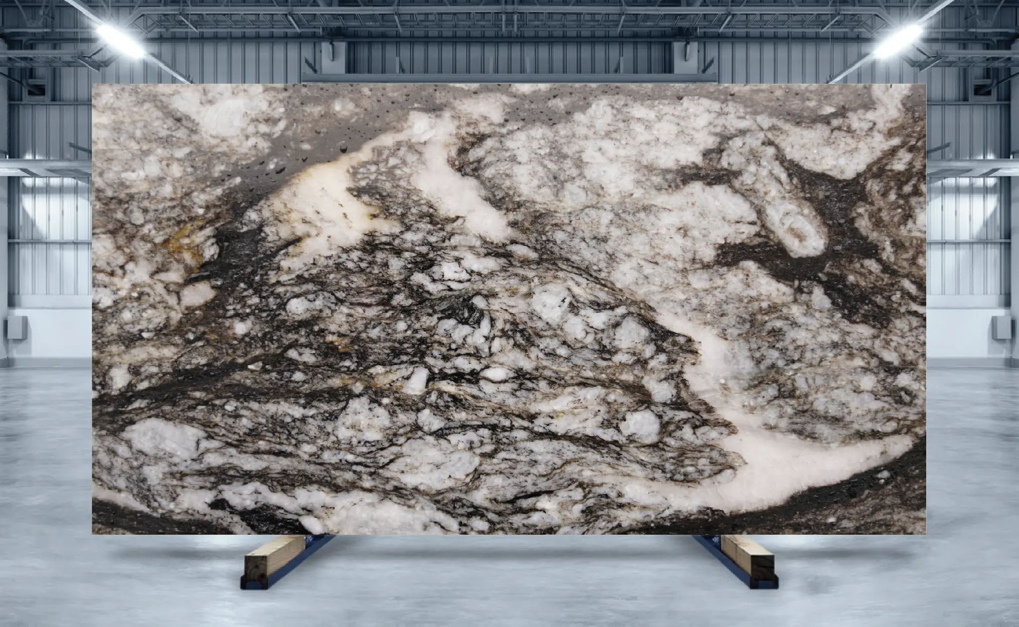 Ayres Brown is a stunning super-exotic granite, prized for its unique appearance. Its surface showcases bold patterns in deep gray, black, brown, and white hues, adding dramatic appeal to any interior setting. The intricate layers of patterns and colors make it perfect for creating focal points such as accent walls, tabletops, countertops, and more.