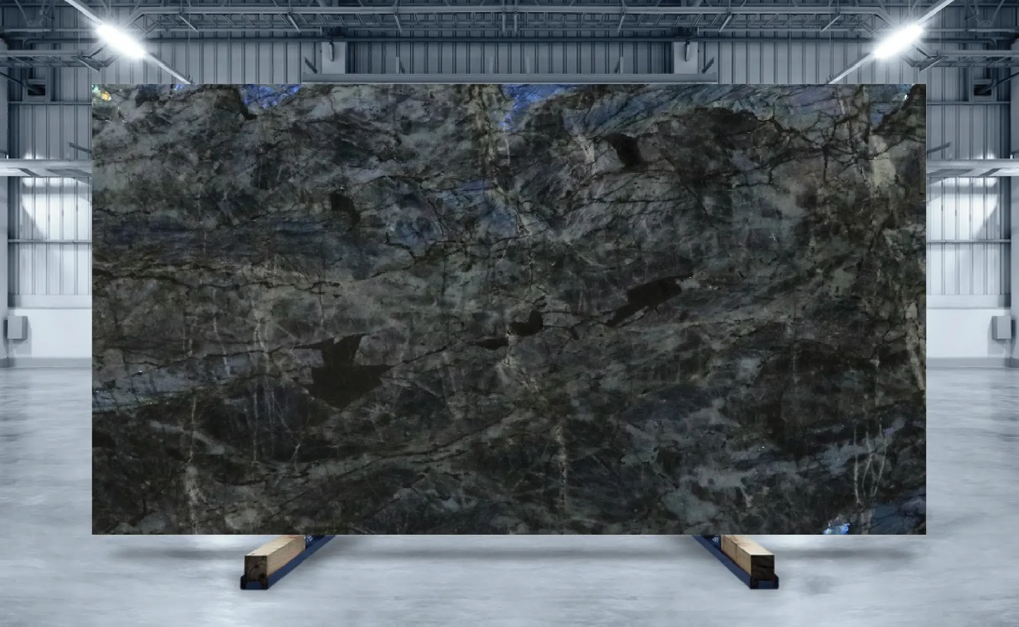 Baobab is a super-exotic granite popular for luxury design features. It features a black surface enriched with grey crystal arrangements. What makes this stone truly special is the presence of iridescent labradorite inclusions that shimmer blue-green under light, adding to its aesthetic appeal. Create gorgeous countertops, accent walls, fireplace surrounds, tabletops, and more with our premium Baobab slabs.