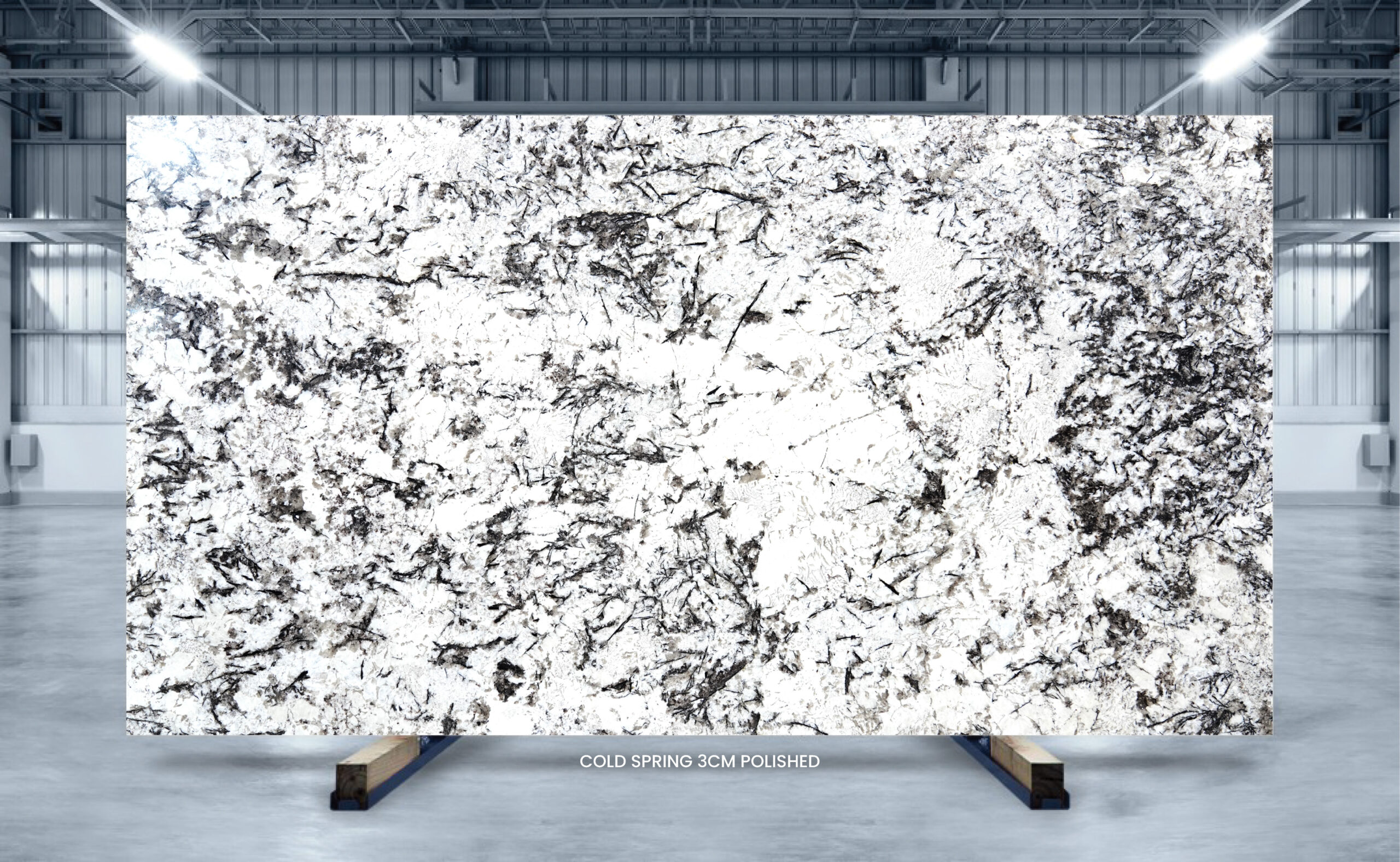 Cold Spring is a beautiful white granite quarried in Brazil. Deep grey striations stand out against its white background, creating a visually arresting display. This high-end granite is a popular choice for surfacing both interior and exterior spaces.