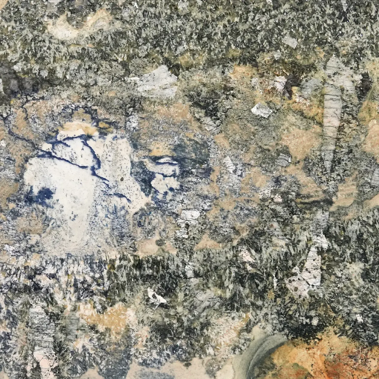 Kamarika granite is prized for its colorful canvas. Quarried in Italy, this stone showcases a captivating blend of green, blue, beige, white, brown, golden, and other beautiful hues, making it an excellent choice for designing focal points that inspire. In addition, its remarkable resilience contributes to the overall durability of the space.