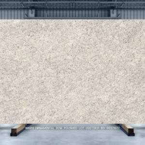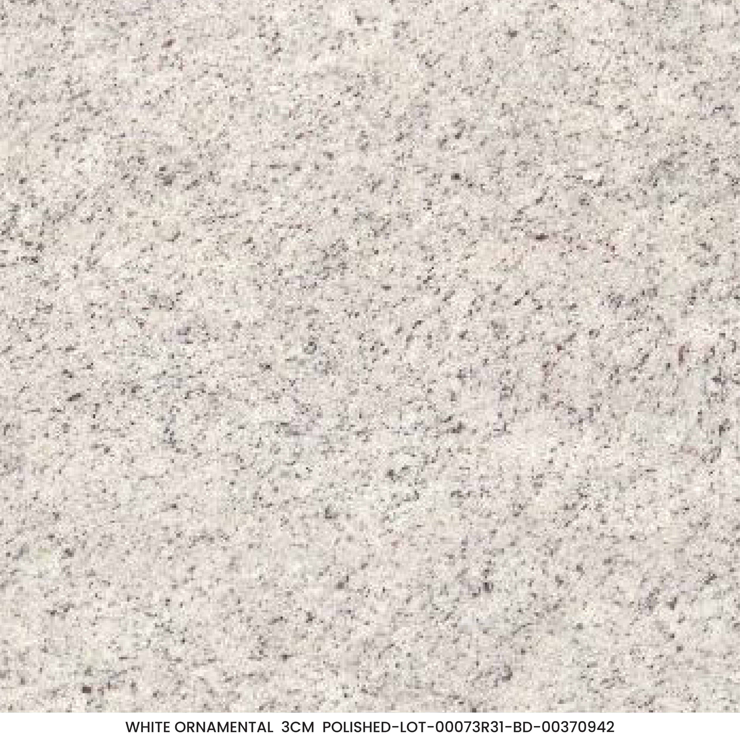 White Ornamental granite is a perfect choice for designing warm and inviting spaces. Quarried in Brazil, it features a warm white background mottled with taupe, beige, grey, and red accents, giving it a versatile look. Its neutral tone can be paired with both warm and cool shades, depending on the design style.