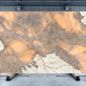 Golden Ambra porcelain transforms any space into a luxurious retreat. It mirrors the unique beauty of Patagonia quartzite, flaunting a symphony of golden, grey, and beige hues. The stunning interplay of golden and grey tones creates an impression of backlit Patagonia, making it an ideal choice for designing statement applications including feature walls, islands, and more.