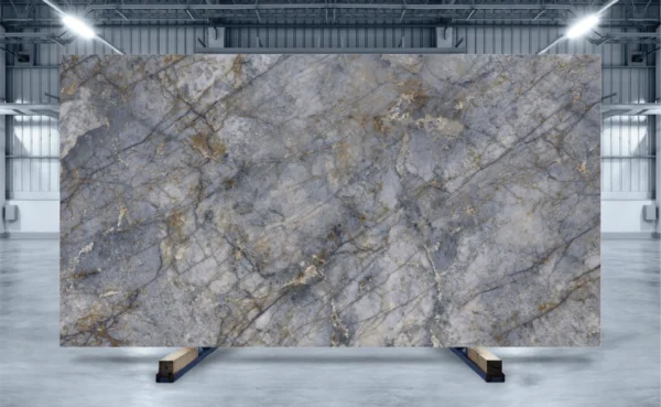 Ganito Blue Ande porcelain captures the essence of natural granite with an exotic twist. Its background shows variations of light and deep grey accents highlighted with veins weaving throughout the surface in abstract patterns. The occasional golden striations create a stunning contrast against the stone’s bold accent. The moody aesthetic of Granito Blue Ande resembles a dramatic, cloudy sky. The stone can blend perfectly into traditional and modern interior design styles.