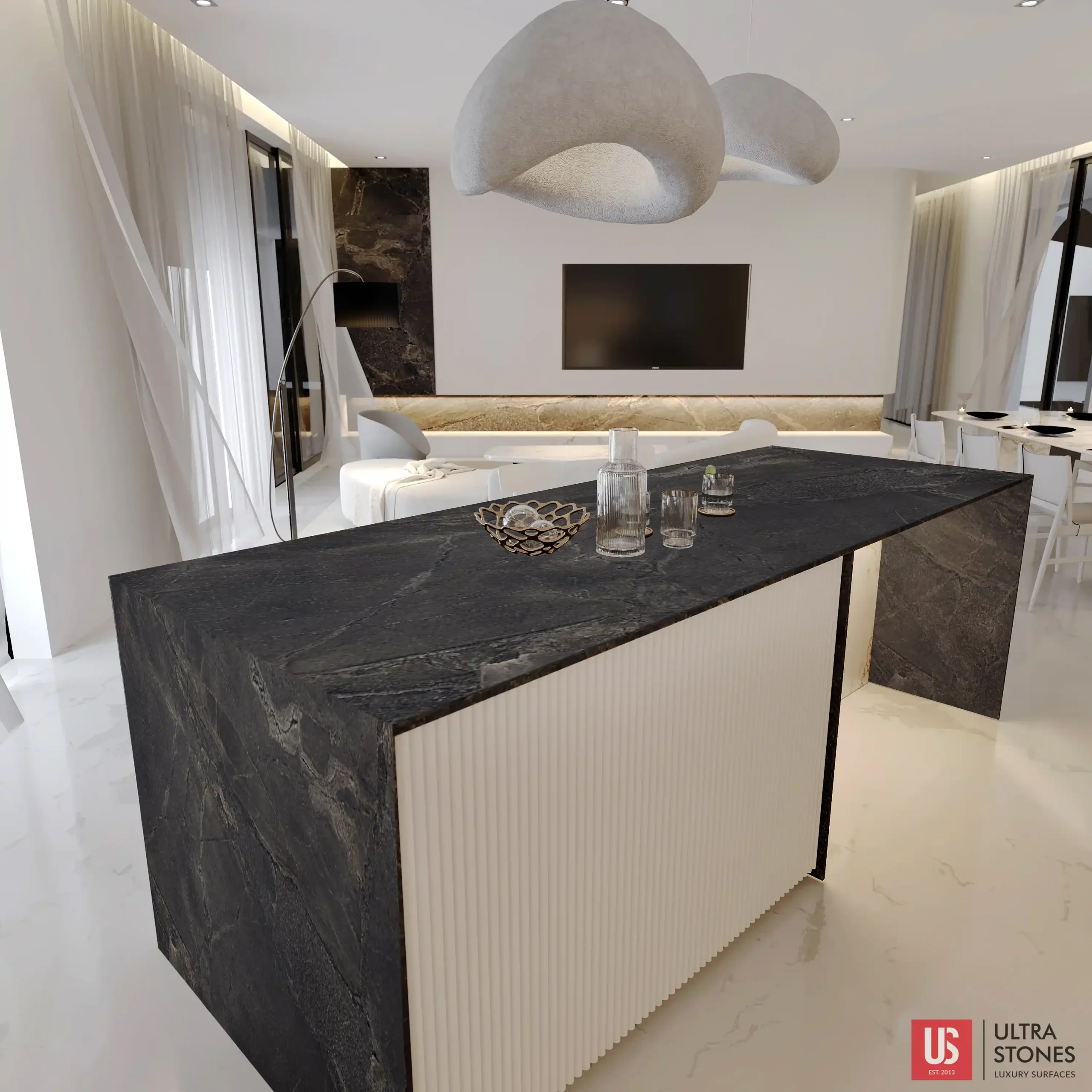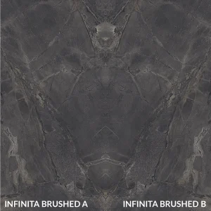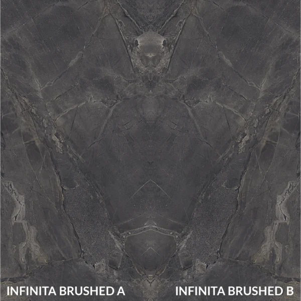 Infinita is a premium porcelain color, known for its dark grey accent. It looks strikingly similar to natural stones, especially granite. Its earthy background boasts light-colored veining stretching across the surface, resembling galaxies floating in the infinite black sky. The dramatic aura of Infinita makes it an ideal choice for adding depth to any warm and sleek design setting. Furthermore, the stone’s brushed surface lends an air of sophistication to the surface. Infinita is a highly durable material, making it suitable for high-traffic areas such as kitchen, bathroom, and living room.