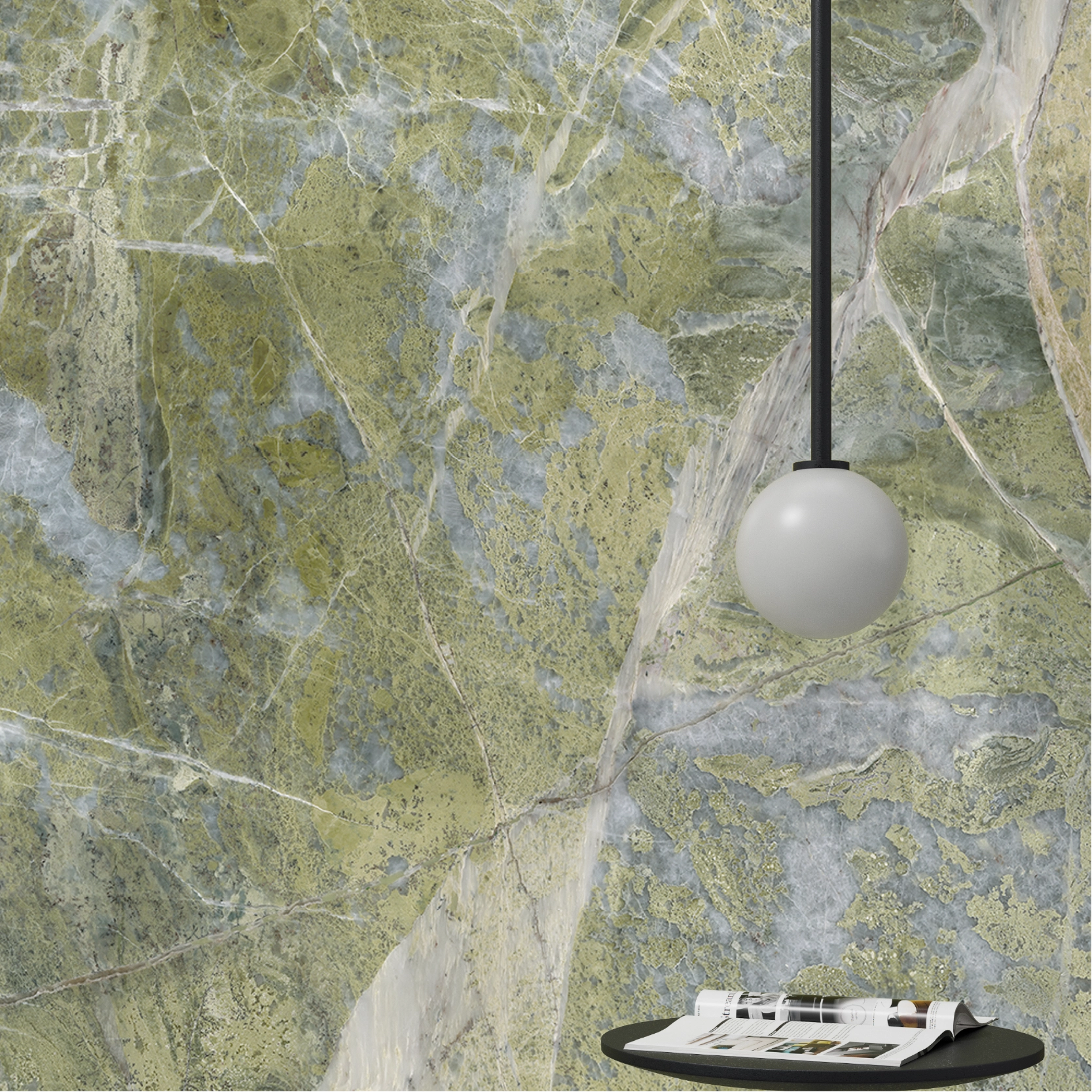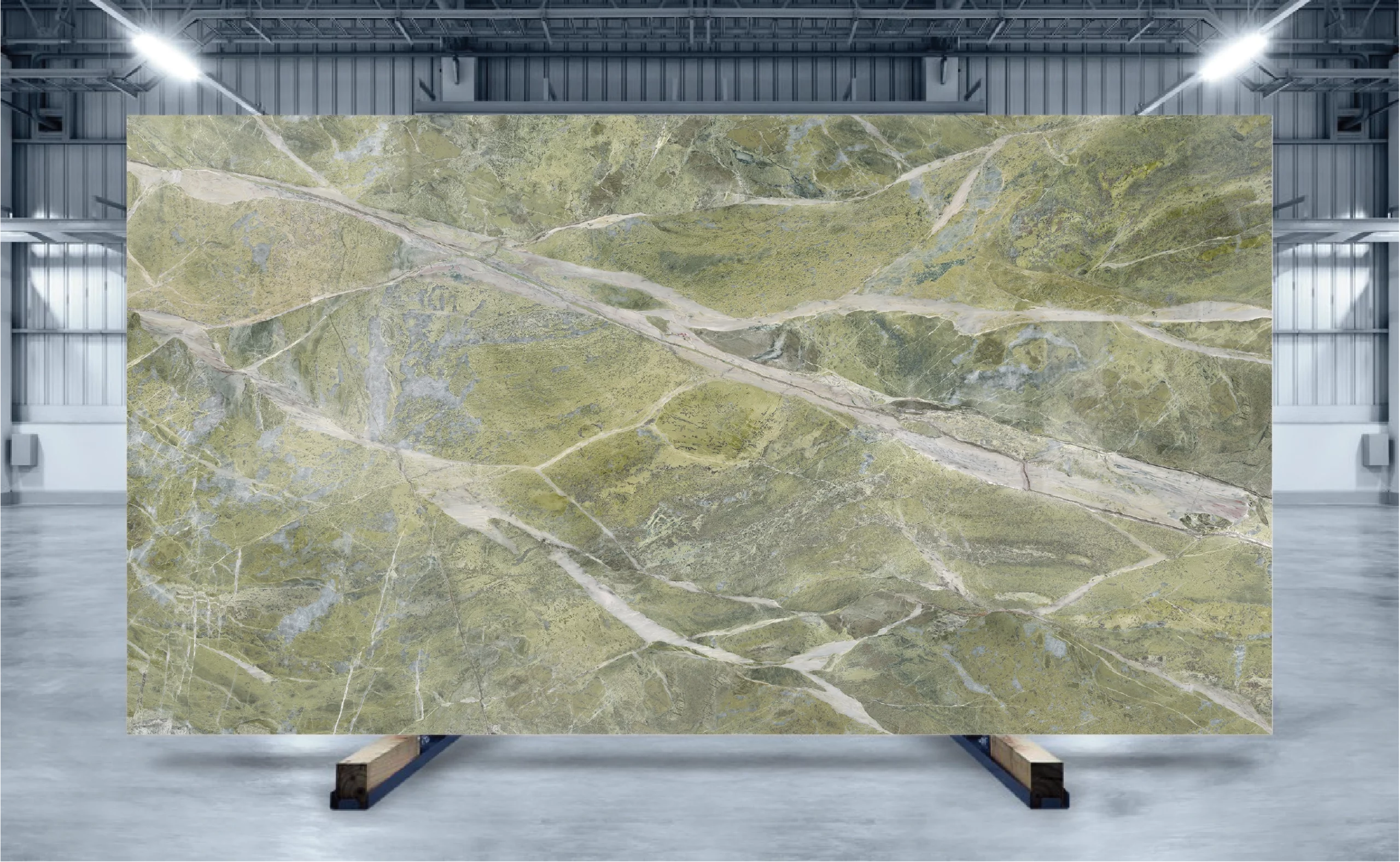 The rich texture of this beautiful granite with various hues of greens and occasional blues, whites and greys and white streaks, the dramatic style makes this kaolin slab a very rich man-made stone. It brings a natural aura to the space in which it is incorporated. A great choice for construction of accent walls, backsplash, kitchen countertops, vanity tops and much more.
