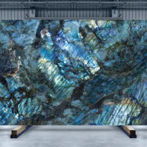 Labradorite is a captivating porcelain surface. It can leave you mesmerized with its vibrant play of colors. Inspired by the natural labradorite crystal, this porcelain surface boasts a stunning blend of deep blues, greens, and golden hues. Its iridescent background looks unique when used as a kitchen countertop or accent walls, lending an artistic flair to any design. In addition, the stone is highly durable and immune to external impacts. Transform your house into a magical wonderland with this exquisite Labradorite Kaolin stone.