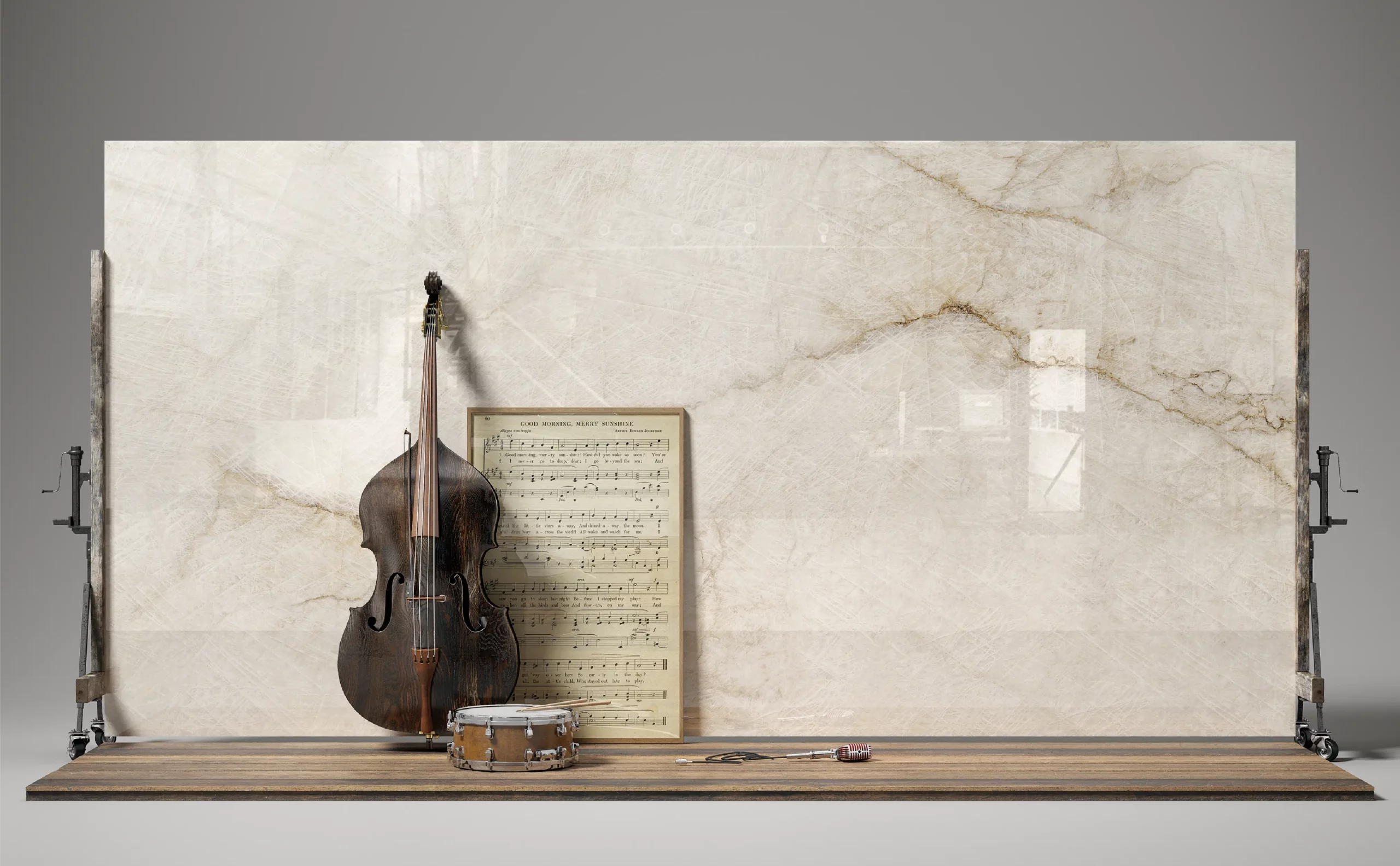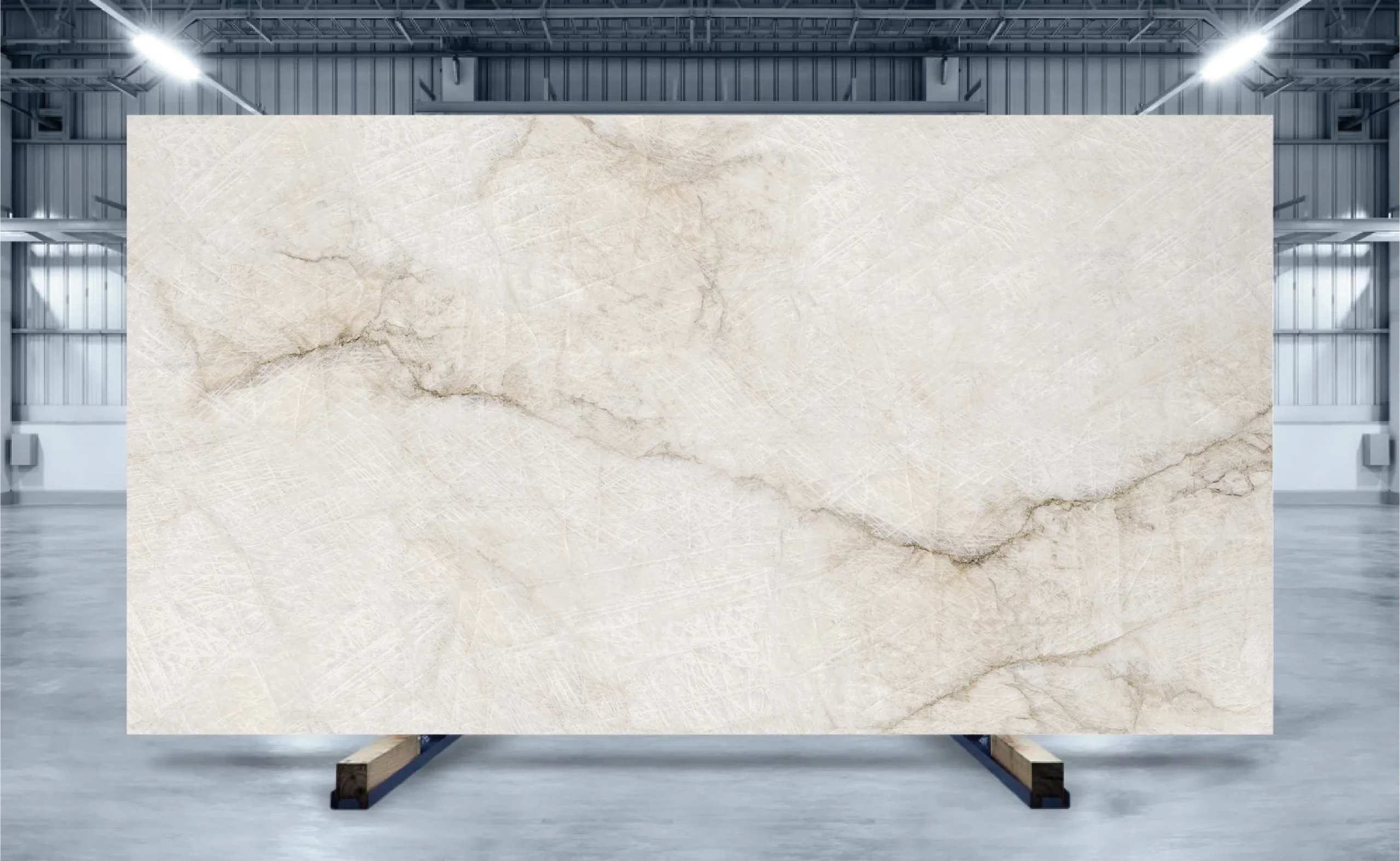 A beautiful man-made stone with contemporary look and a timeless style. It has a creamy white backdrop with a hint of brown and dark brown streaks running flowing through the surface. The mesmerizing design of this marble can become the cornerstone of your house and offices. An ideal choice for construction of countertops, accent walls, wall cladding, flooring, stairs, bar cabinets and much more.