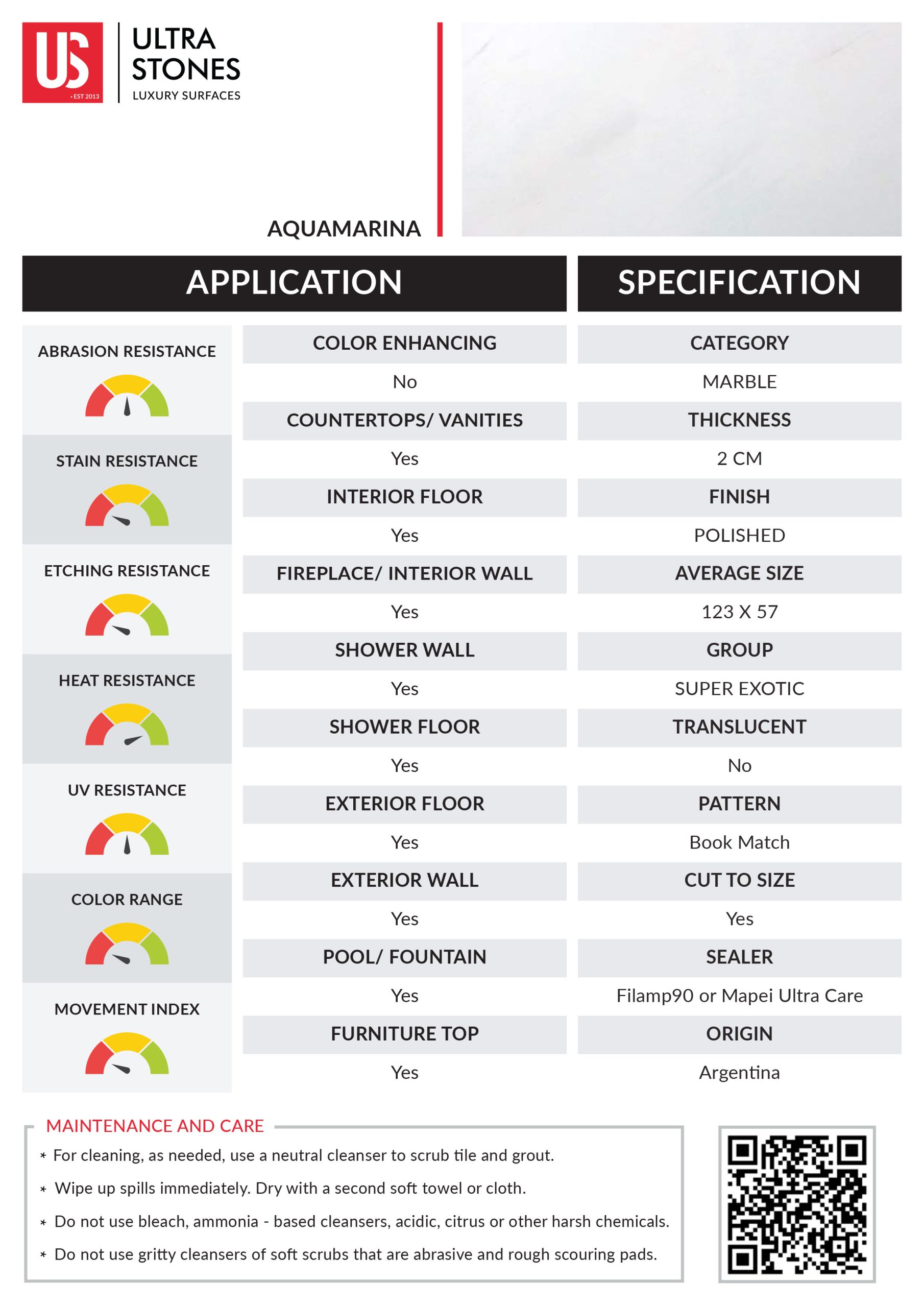 Aquamarina marble is prized for its serene beauty and superior durability. It flaunts a soft white surface kissed with subtle grey undertones and greenish-grey striations, offering a minimal yet elegant look. Its polished surface reflects natural light, brightening up both intimate and grand settings.