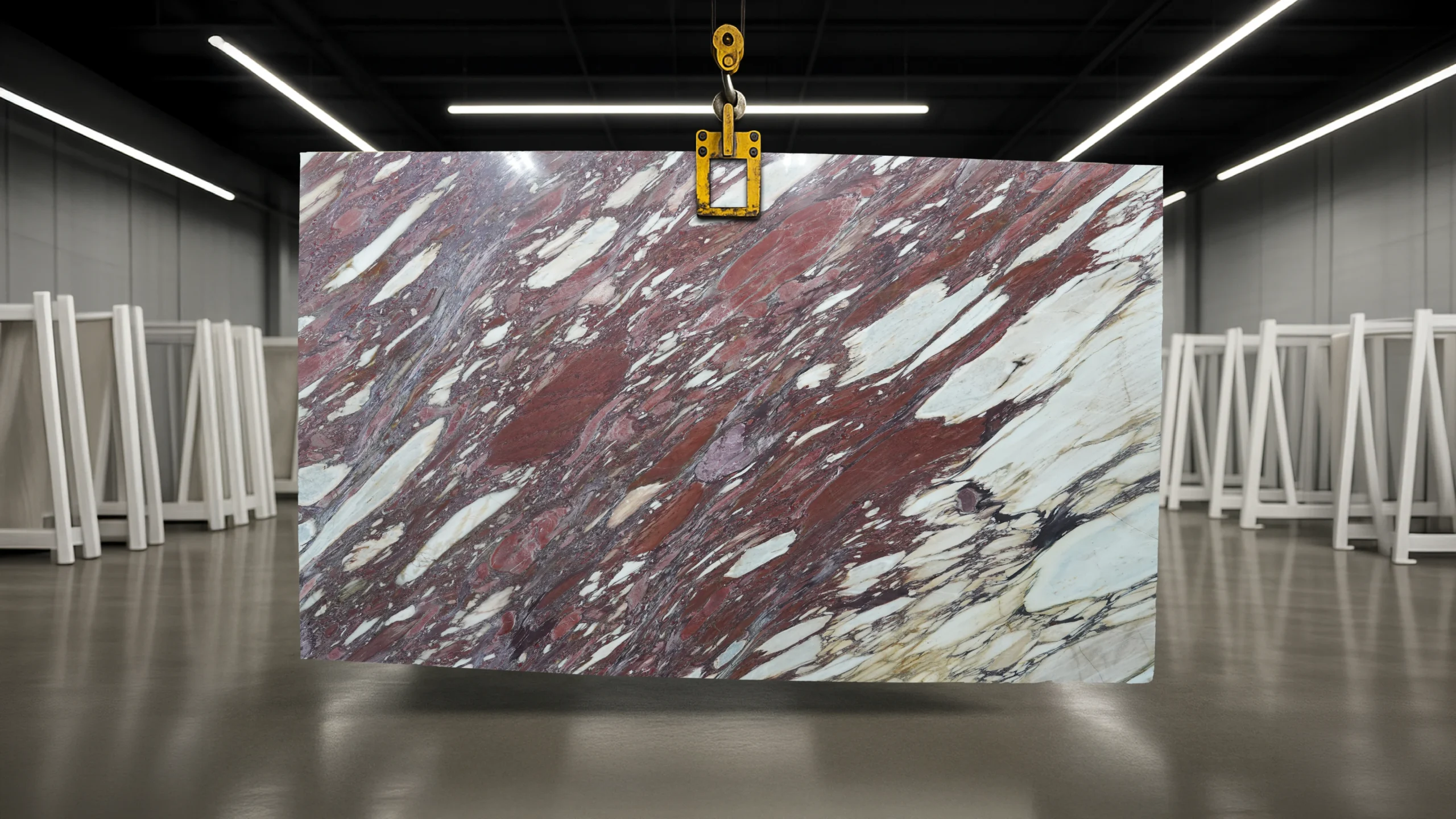 Breccia Medicea marble is known for its high-drama appearance. It showcases brecciated patterns in warm, earthy tones ranging from red and terracotta to burgundy and lilac. Traces of white calcite fragments give the stone a desired contrast and visual balance. Subtle golden overtones further add an antique touch. Designers and homeowners prefer this marble for adding ornamental details in spaces.