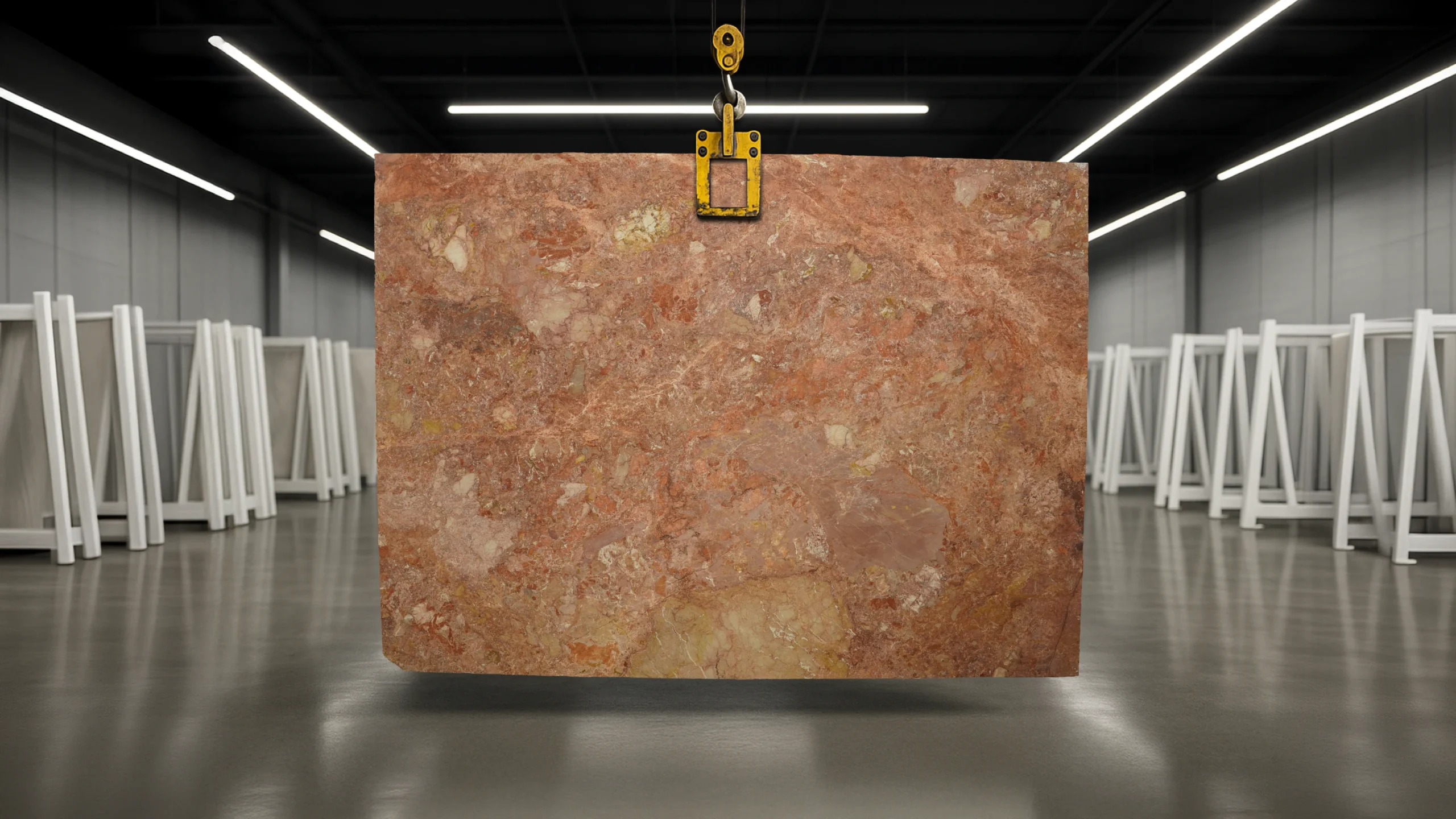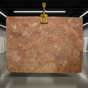 Breccia Pernice marble is nature’s masterpiece. Quarried in Italy, it showcases a spectacular burst of warm tones ranging from soft pink and peach to lilac and reddish brown. Subtle hints of olive, ivory, and beige weave through the slab, counterbalancing the saturated warm tones to create a more layered appearance. Breccia Pernice is popularly used for flooring, countertops, and wall cladding in high-end projects.