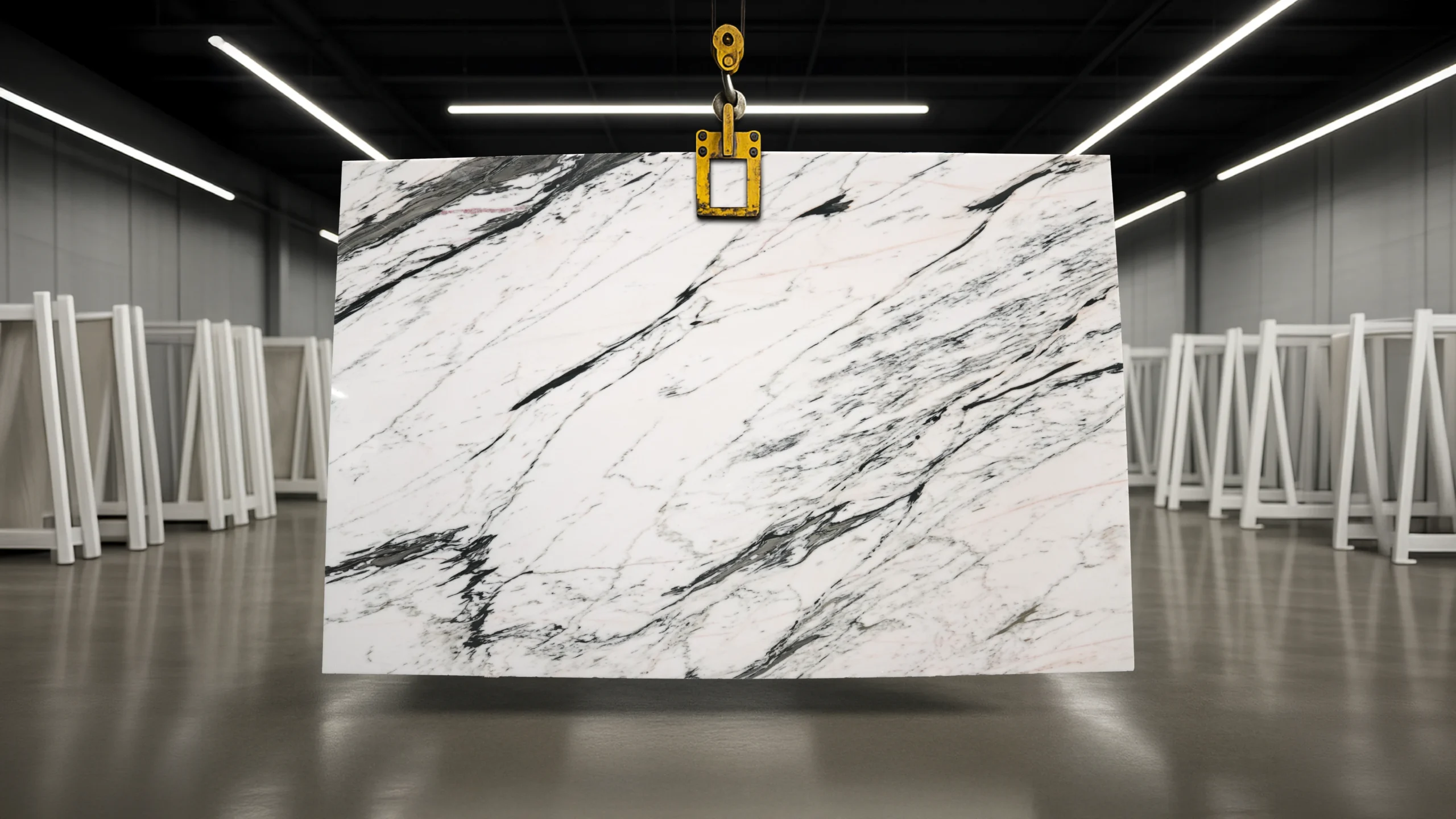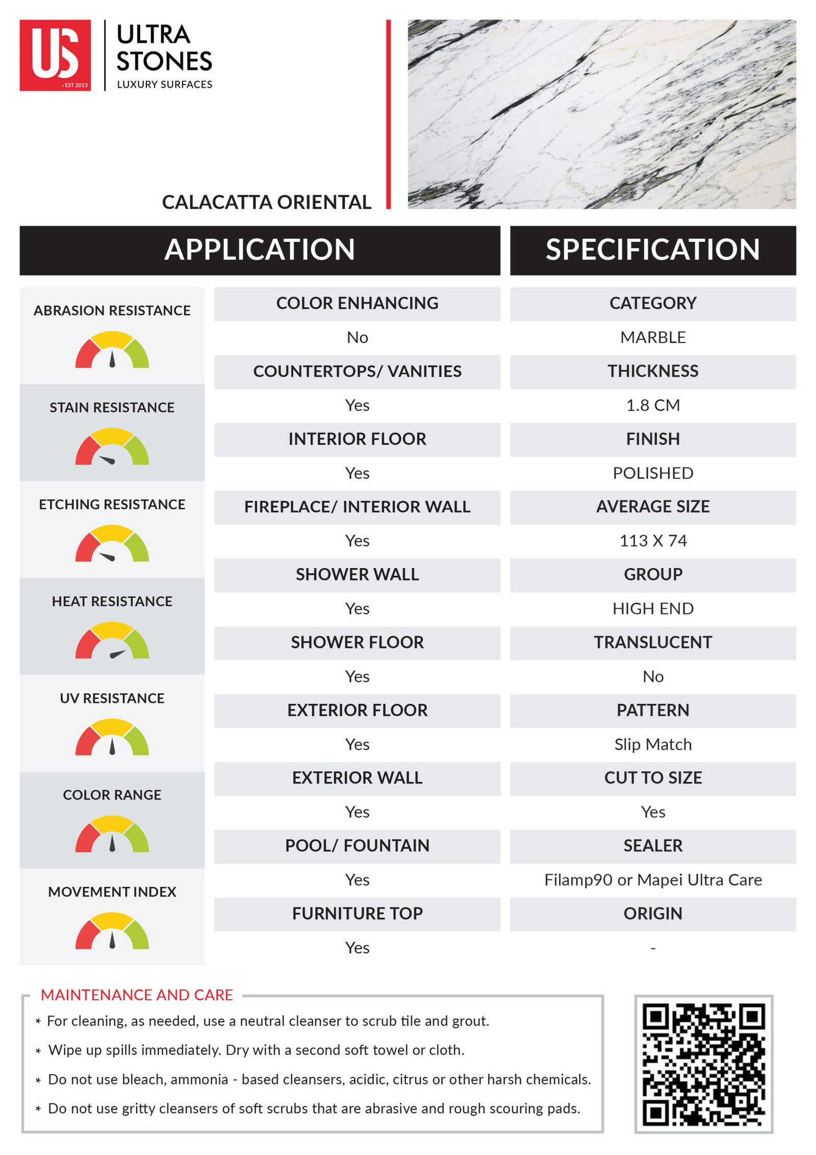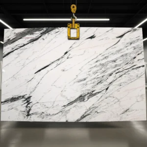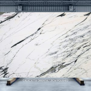 Calacatta Oriental is a premium white marble quarried from the mountain regions of China. Its pristine white background looks stunning with bold veins in taupe, yellow, and jet-black. Calacatta Oriental is admired for its contrasting accents that add a dramatic flair to any interior. From luxury kitchen countertops to exquisite flooring and vanity tops, Calacatta Oriental marble lends an artistic air to any space.