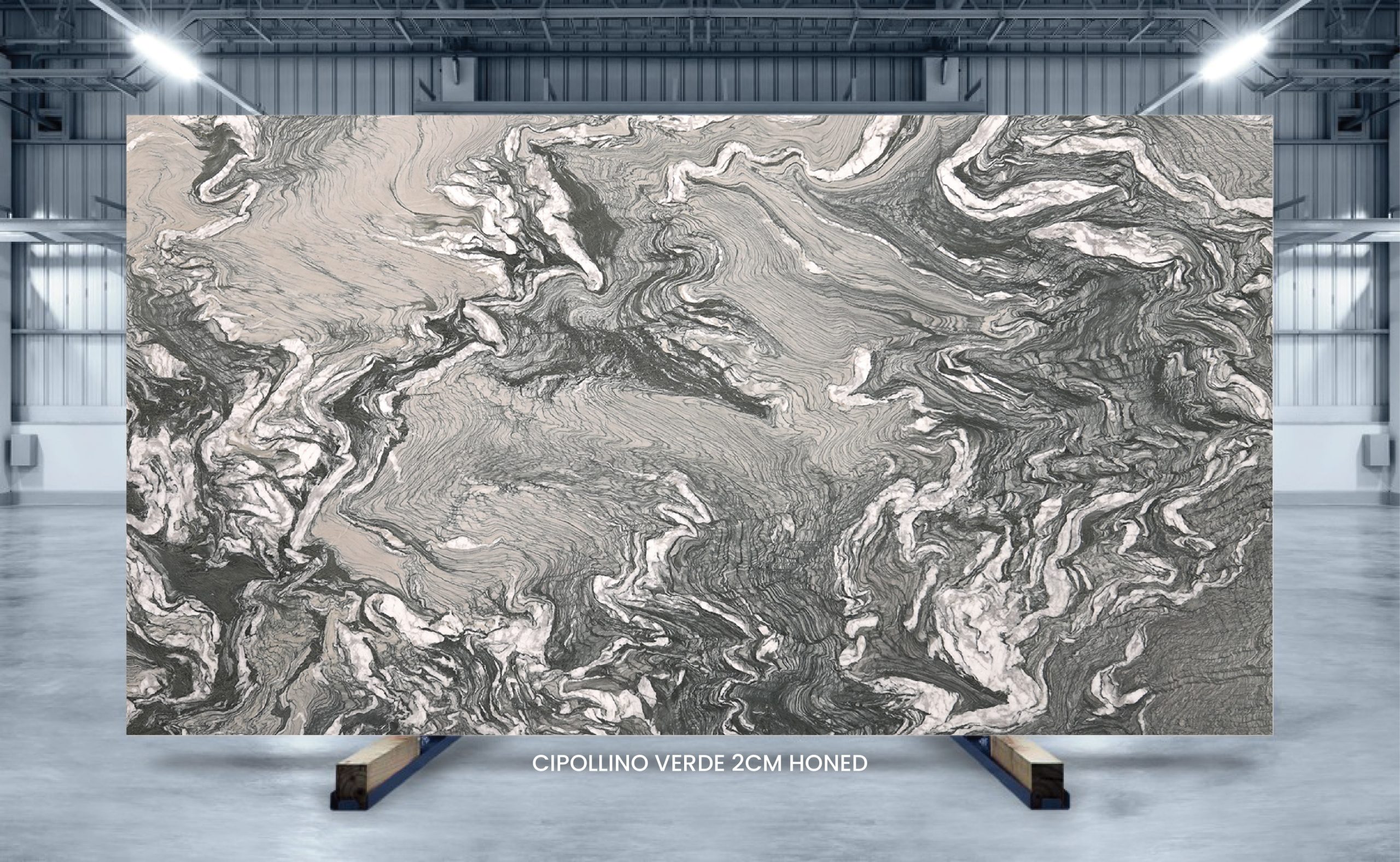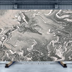 Quarried in Italy, Cipollino Verde marble is a striking natural stone celebrated for its captivating color palette and dynamic, swirling patterns. Its exquisite surface is animated by graceful veins in greenish-grey, taupe, and ivory white, creating a dramatic yet balanced visual composition. Renowned for its modern and artistic character, this luxury marble complements both minimalist and maximalist design styles, making it a distinctive choice for refined interiors.