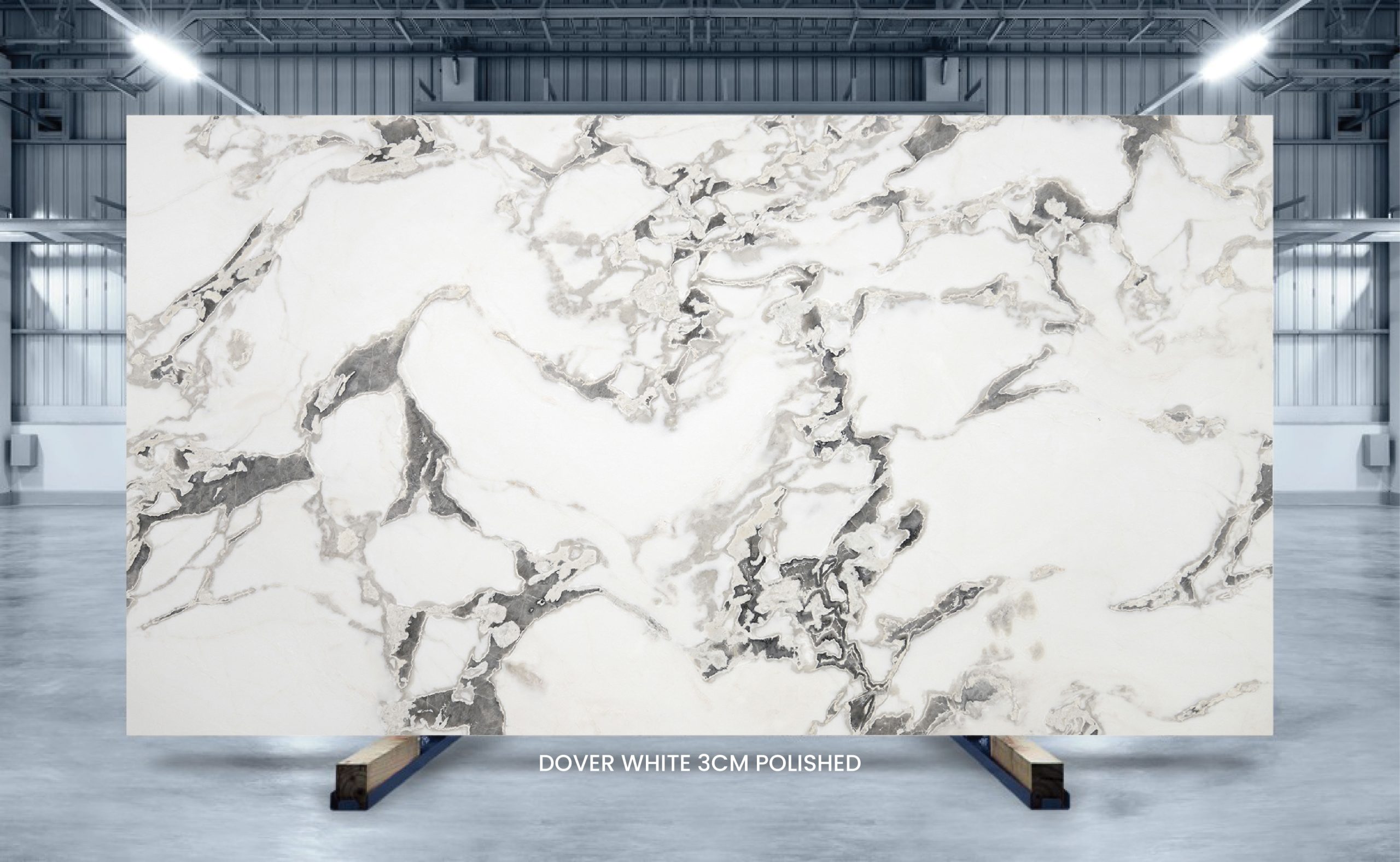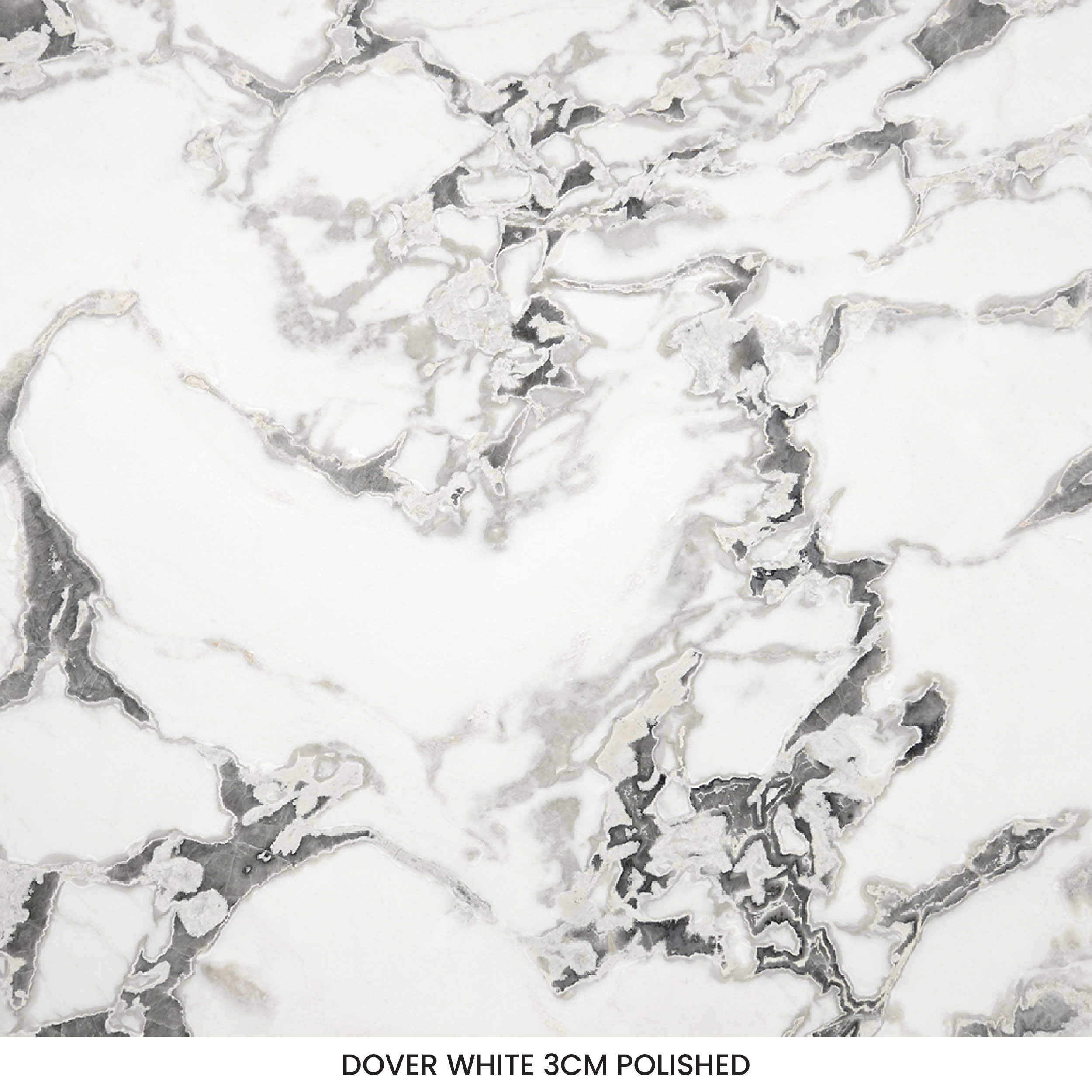 Dover White marble is a perfect choice to bring dramatic appeal to your space. Quarried in Namibia, the stone’s bold veining and subtle swirls in grey and tone-on-tone white create a classic look on a pristine white background. This luxury marble boasts a timeless contrast of light and dark accents, adding depth and dimension to any space. It is an excellent choice for durable and beautiful wall cladding, kitchen countertops, bathroom walls, and contemporary interior or exterior applications with a cool, tranquil atmosphere.
