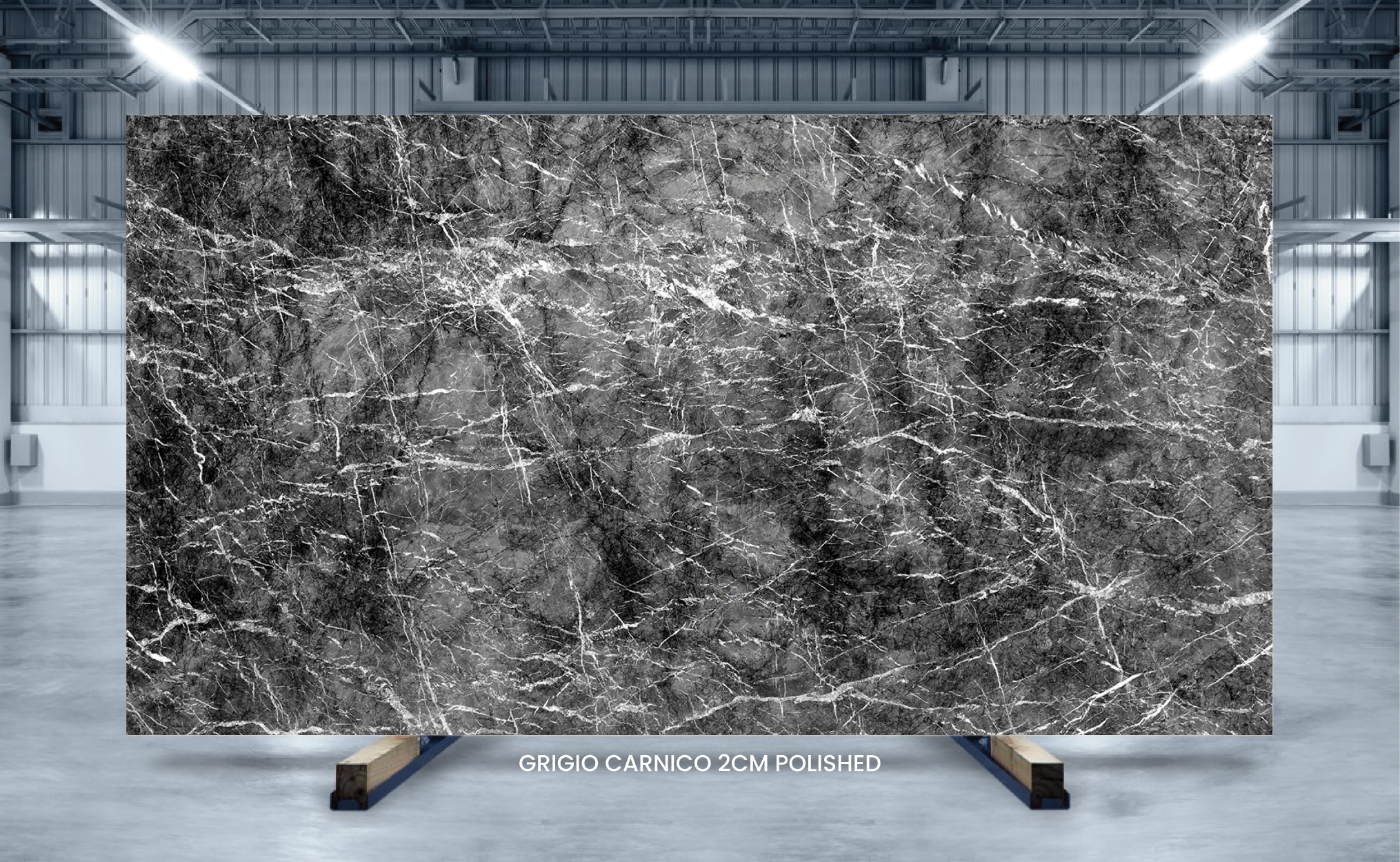 Grigio Carnico marble features variations of light and dark grey accentuated by subtle white streaks, making it ideal for creating spaces with dramatic visual impact. Whether used for statement countertops or accent walls, this marble adds a bold and artistic touch to interiors with premium quality and timeless appeal.