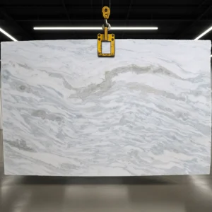 Namib Sky marble is quarried in Namibia, South Africa. It captivates with a perfect blend of cool and warm white tones, elevated by graceful grey veins. Whether used in a modern kitchen or bathroom, Namib Sky marble transforms any space into a statement of luxury. The grey swirls infuse the setting with a sense of visual movement.