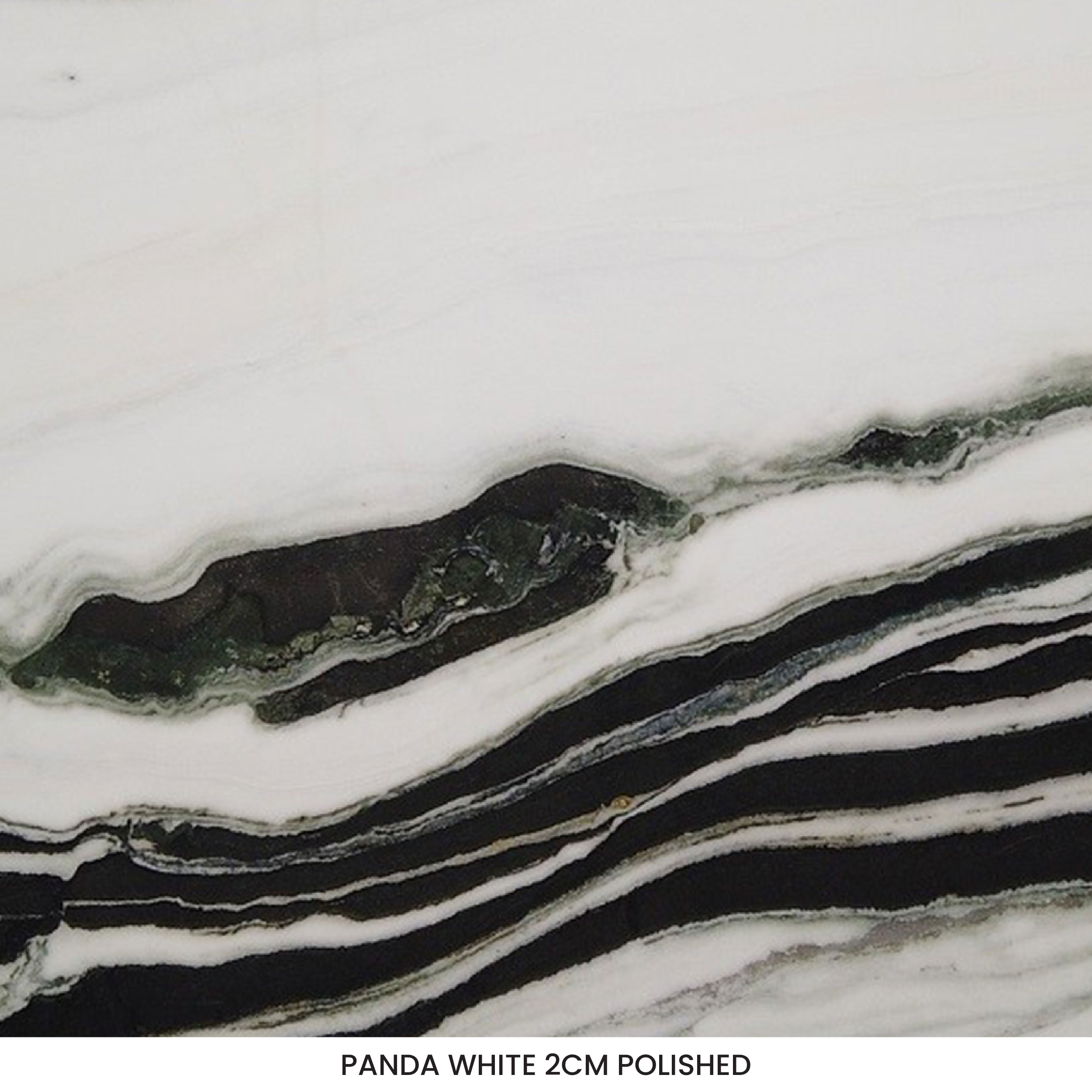 Panda White marble is a timeless natural stone featuring a dramatic palette of black, white, and subtle green hues. The bold, wavelike banding makes this stone ideal for creating dramatic accent features such as shower walls, fireplace surrounds, kitchen islands, and more. From contemporary to maximalist design, its unique appearance adds a touch of artistic flair to designs.