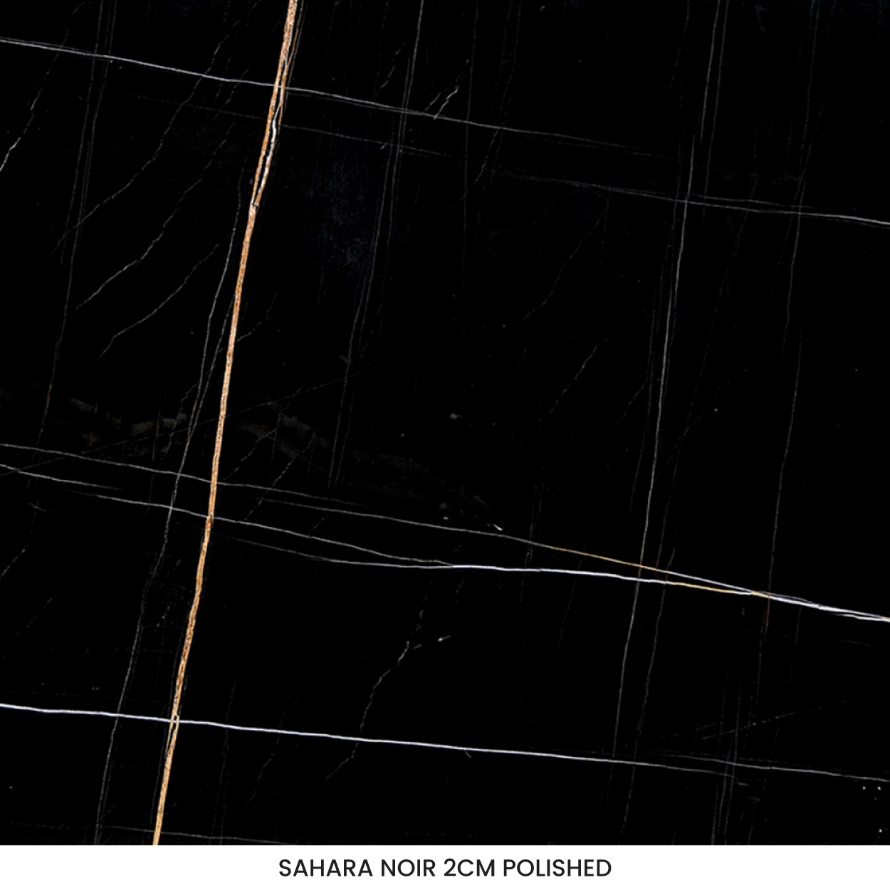 Sahara Noir is a premium grade marble quarried in Italy. The clean black backdrop of its surface is accentuated by straight and thin orange and white streaks. The extraordinary appearance of this marble makes it popular amongst designers and architects for commercial and residential projects. It can be used for designing exquisite walls, countertops, backsplash, floors, wall cladding, fireplace surrounds, and more.