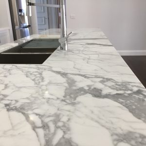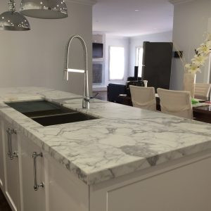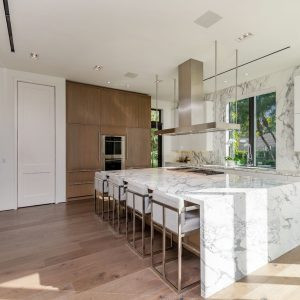 Statuario marble is one of the most premium surfacing materials. It features a cool white surface elevated by thick grey veining patterns, adding a dramatic yet elegant touch to any design aesthetic. Whether a kitchen or bathroom, Statuario marble can instill a sense of opulence and timeless allure to the space.