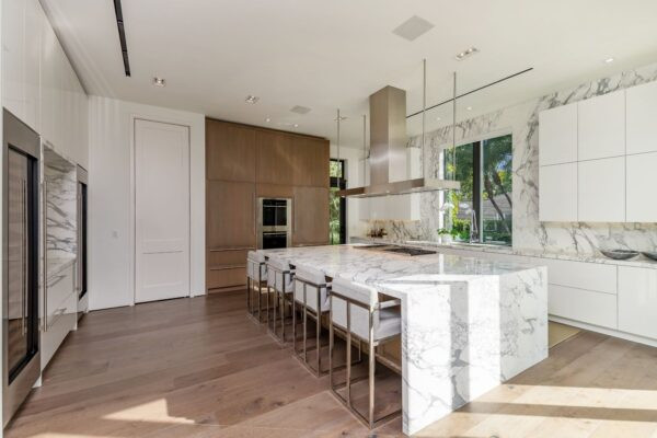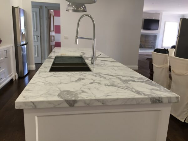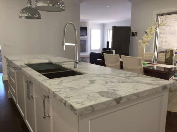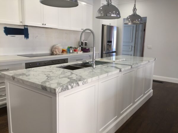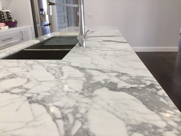 Statuario marble is one of the most premium surfacing materials. It features a cool white surface elevated by thick grey veining patterns, adding a dramatic yet elegant touch to any design aesthetic. Whether a kitchen or bathroom, Statuario marble can instill a sense of opulence and timeless allure to the space.