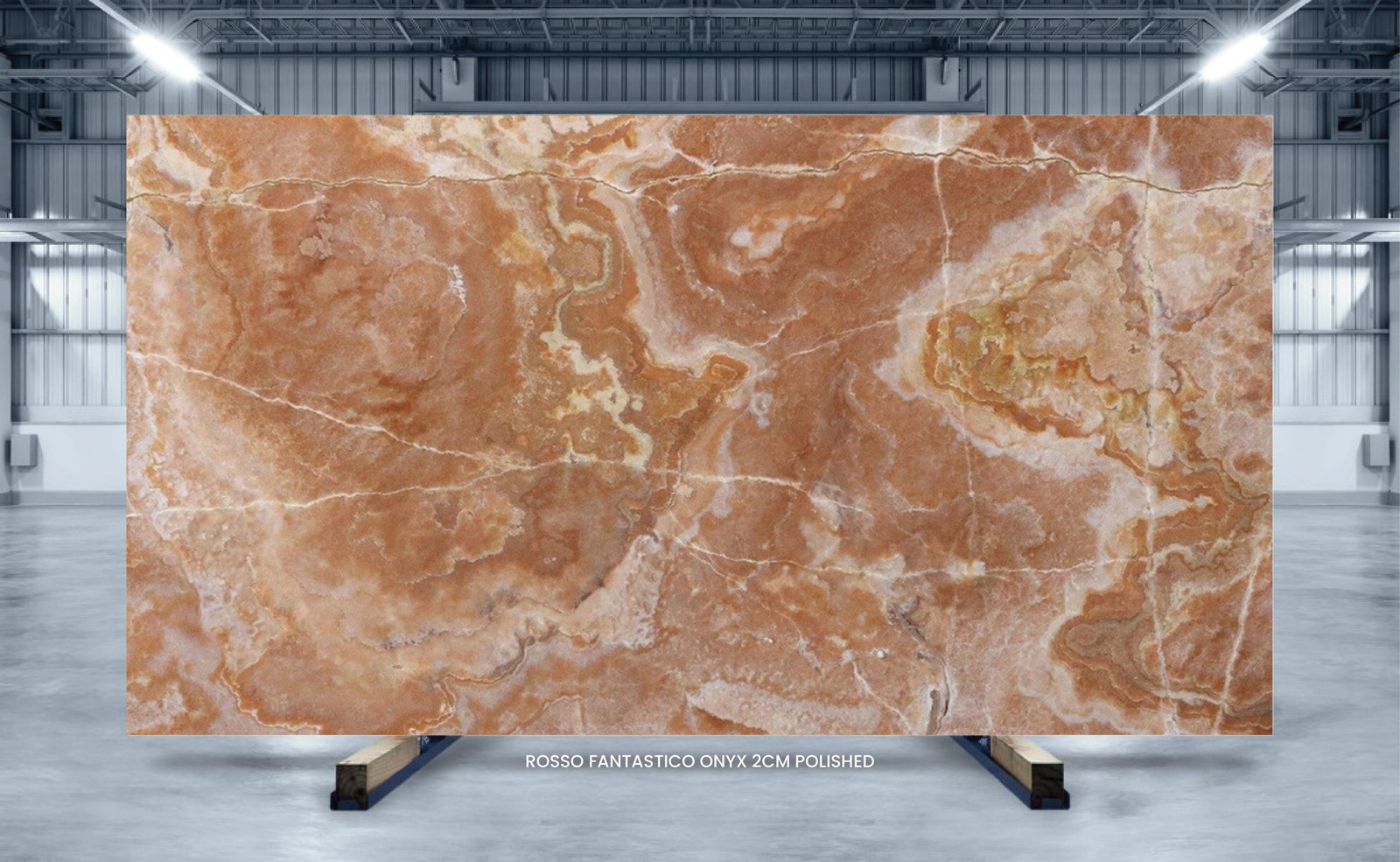 Bring warmth to your interiors with Rosso Fantastico onyx. It features a rustic red surface adorned with peach and golden veins swirling across the surface, offering undisputed elegance to any setting. Durable and gorgeous, this onyx is a perfect feature for both traditional and modern spaces.