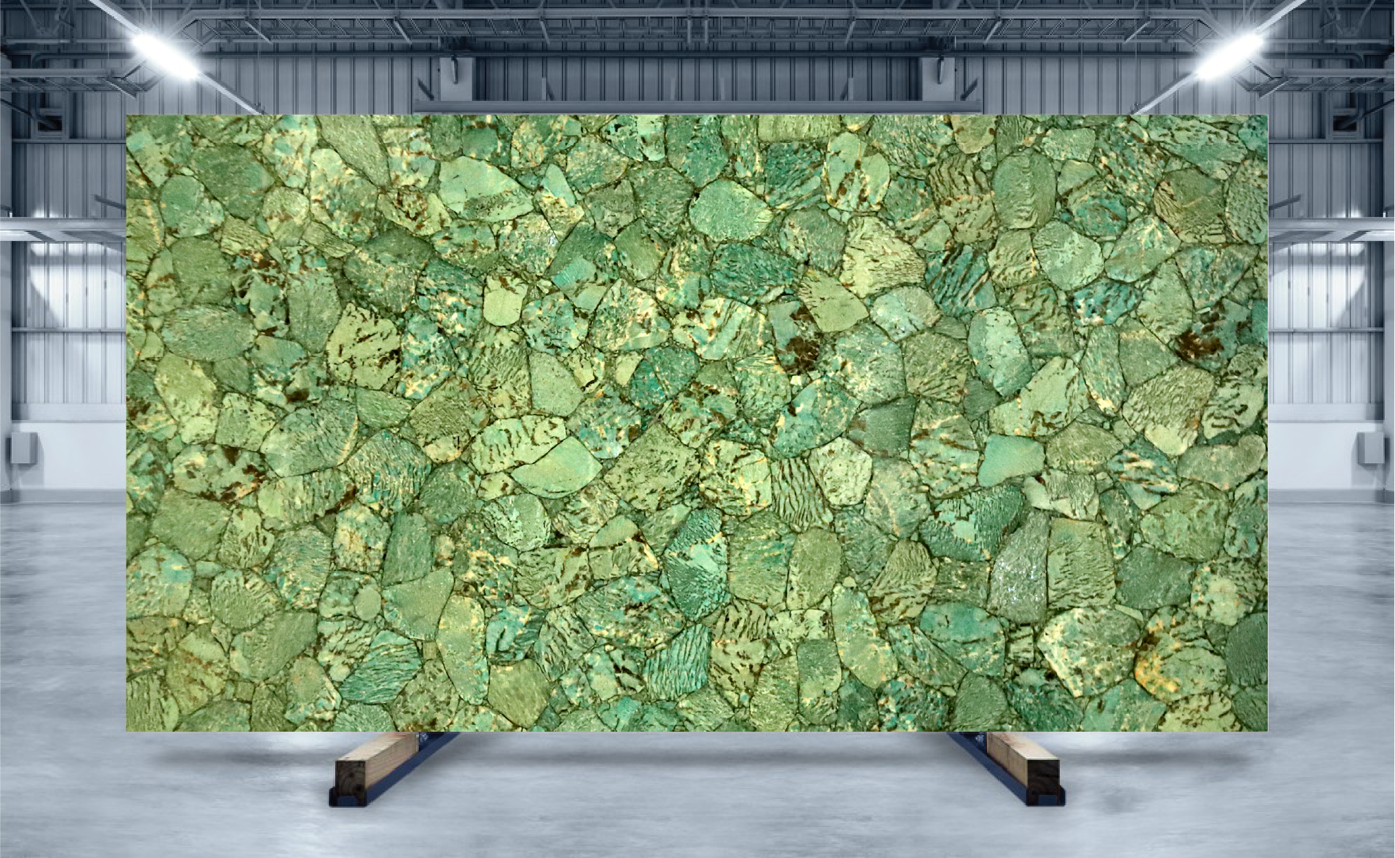 Amazonite enchants with its soothing green hues and crystalline appeal. This stunning stone graces countertops, tabletops, and wall claddings, bringing tranquility and elegance. Each slab reflects the Earth’s artistry, enriching interiors with timeless, natural beauty.