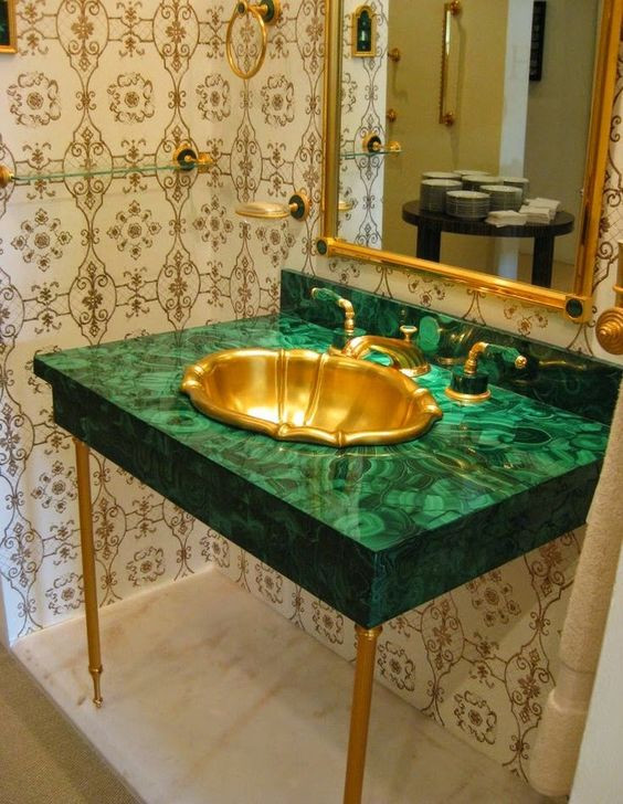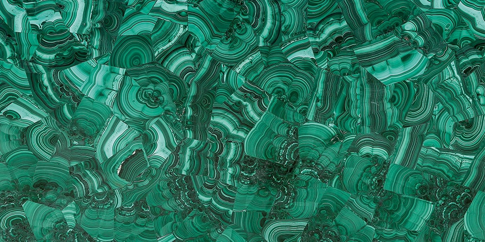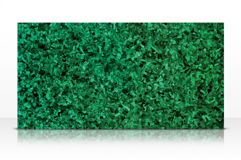 Believed by some to still be evolving with the potential to become one of the most important healing stones of the new millennium. Features semi-precious stone in intense green tones. It brings a vibrant and dramatic flair to any project. This material is the peak of luxury, handcrafted in Africa of genuine malachite veneer over a marble base.