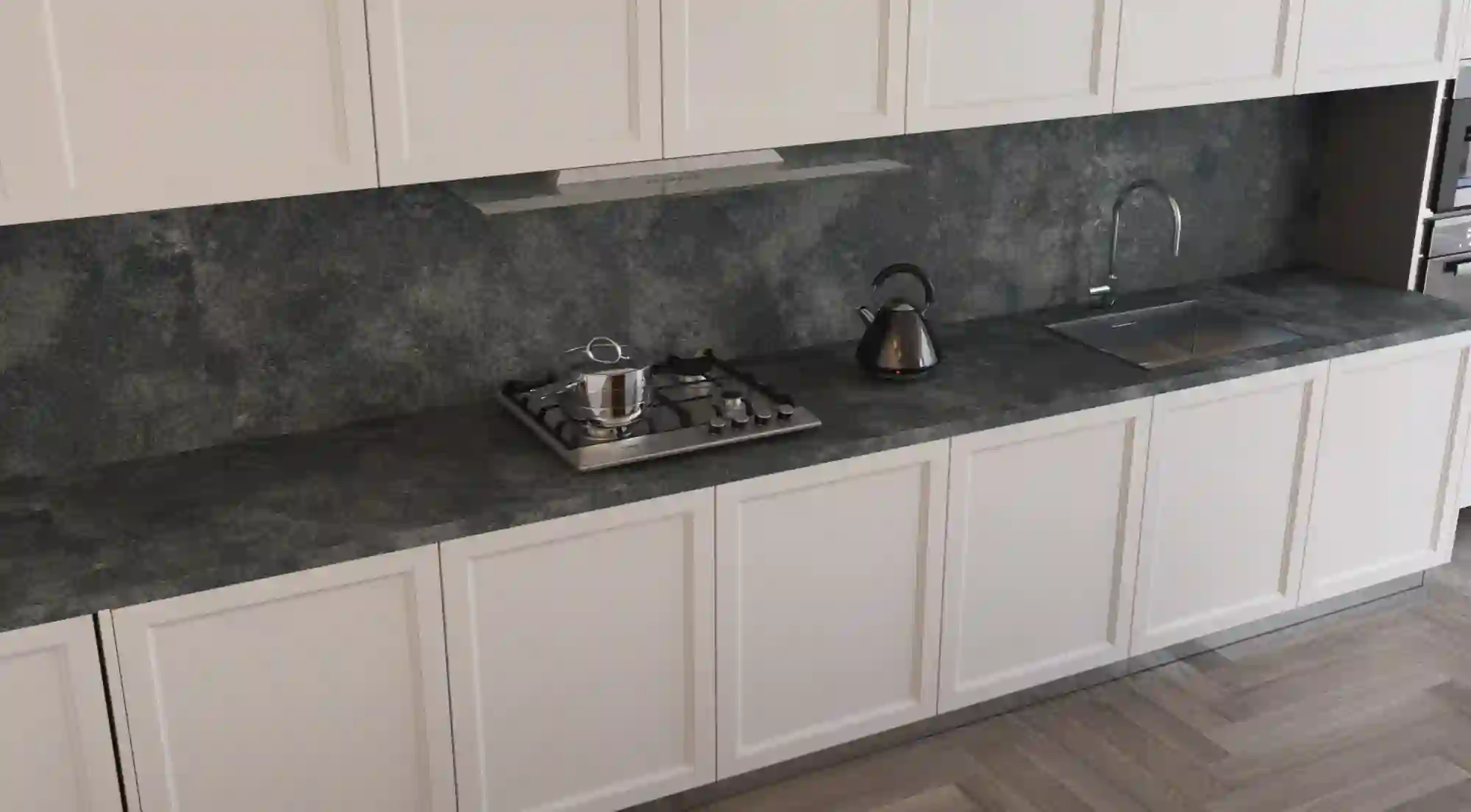 Aqua Grey is a richly textured quartz, valued for its organic appearance and mottled surface in varying shades of light and dark grey. Its granite-like speckled pattern adds depth, making it a versatile choice for various design settings. The smooth matte finish, enhanced by its fine leather texture, brings a refined and natural feel to any space. Aqua Grey quartz is perfect for creating sustainable and aesthetically pleasing environments.